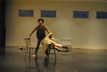 Des boîtes, deux chaises, des vêtements, nous voilà au coeur d’une atmosphère ludique et imprévisible. Un homme et une femme prennent place dans un univers un brin débridé. Ils se côtoient, se touchent et se toisent pour réaffirmer qu’ils sont ensemble, même à distance. Leur langage commun : la façon dont leurs corps s’expriment et se reconnaissent. Une sorte de poème à 4 mains où deux êtres s’écrivent pour s’assurer de l’existence de l’autre.
