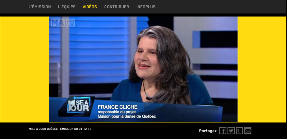 L’émission Mise à Jour de MAtv s’est intéressée à La Maison pour la danse. Visionnez cet excellent reportage à partir de 14 min 38!