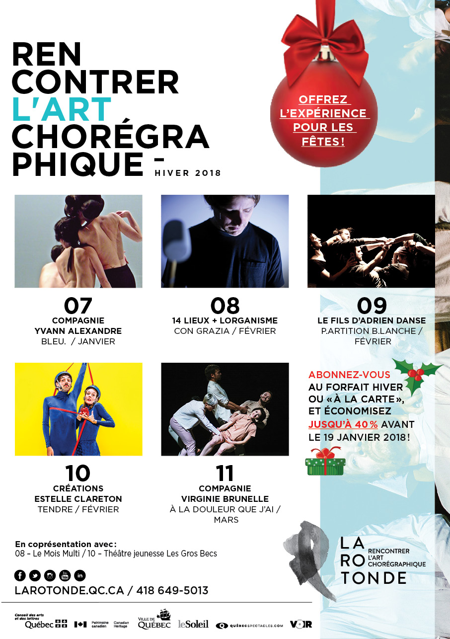 En cette période de réjouissances, nos bureaux seront fermés du 18 décembre 2017 au 6 janvier 2018. Toute l’équipe de La Rotonde se rassemble pour vous souhaiter des moments merveilleux de détente, de festivités et d’ouverture à l’autre!