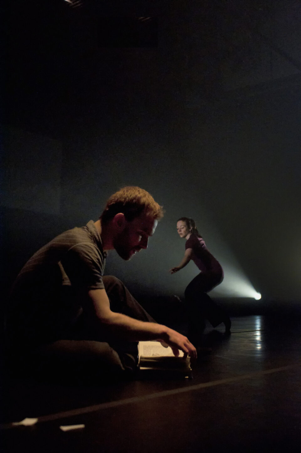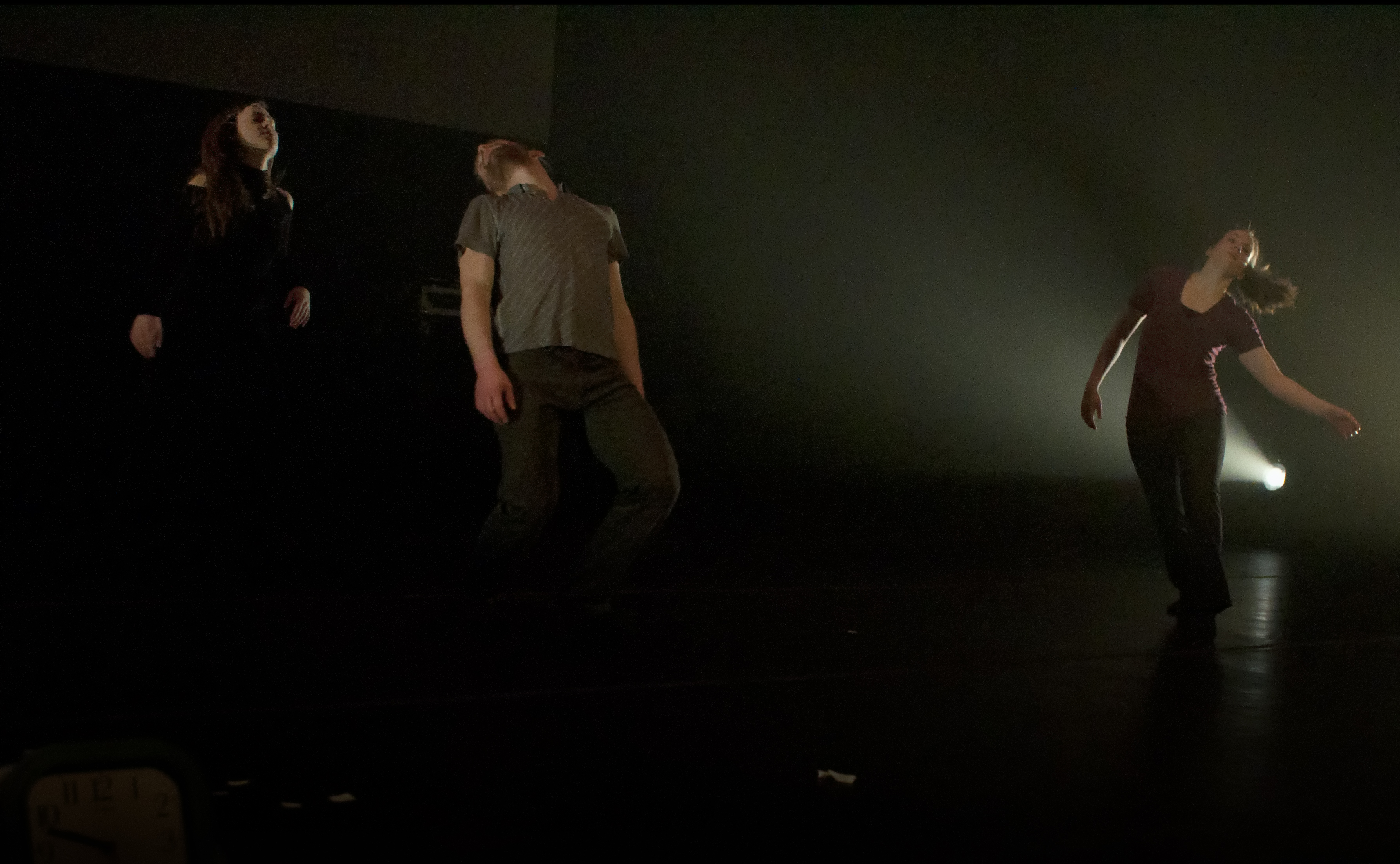 En janvier 2013, les trois finalistes du concours d’écriture chorégraphique se sont retrouvées pendant toute une fin de semaine au Grand studio de La Rotonde. Pendant la première journée, elles ont travaillé à tour de rôle sur différentes étapes du projet, parfois actives, parfois observatrices du travail d’une collègue. C’était le moment charnière où les élèves-chorégraphes partageaient verbalement leurs projets et faisaient s’incarner la danse par des danseurs professionnels, qui en devenaient alors muses et interprètes.