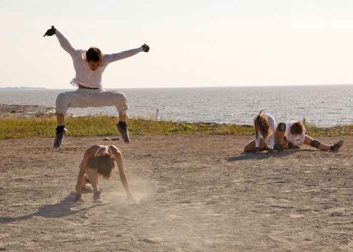 Dans la Salle Multi de Méduse, la compagnie Fleuve | Espace danse propose une expérience un peu hasardeuse: celle de transférer en salle, dans une boite noire et sans aucune scénographie, une chorégraphie créée à l’origine pour être dansée sur le rivage du fleuve St-Laurent.