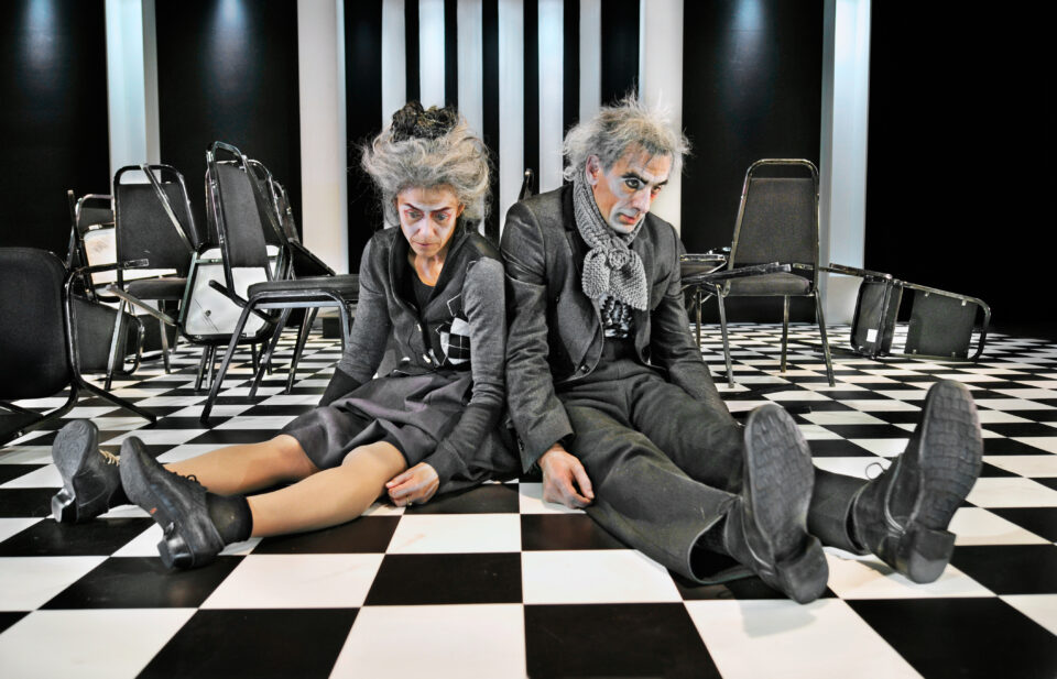 La pièce de théâtre Les Chaises à l’origine du spectacle de PPS Danse co-présenté par La Rotonde et le Théâtre jeunesse Les Gros Becs, a été créée en 1952 par Eugène Ionesco (1909-1994). Qualifiée de tragi-comédie et de farce tragique, Les Chaises est un exemple patent du théâtre de l’absurde qui est, selon la définition trouvée sur théâtre-contemporain.net: «une dramaturgie dans laquelle le non-sens et le grotesque recèlent une portée satirique et métaphysique ». Nouveauté des années 1950 et porté entre autres par deux auteurs français toujours populaires sur les planches internationales, Samuel Beckett et Eugène Ionesco, le théâtre de l’absurde utilise de grands thèmes existentialistes (aussi retrouvés chez Sartre et Camus) pour colorer la vie des personnages souvent retrouvés errants, immobilisés ou figés dans le temps.