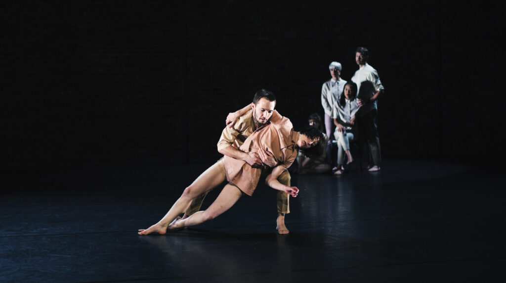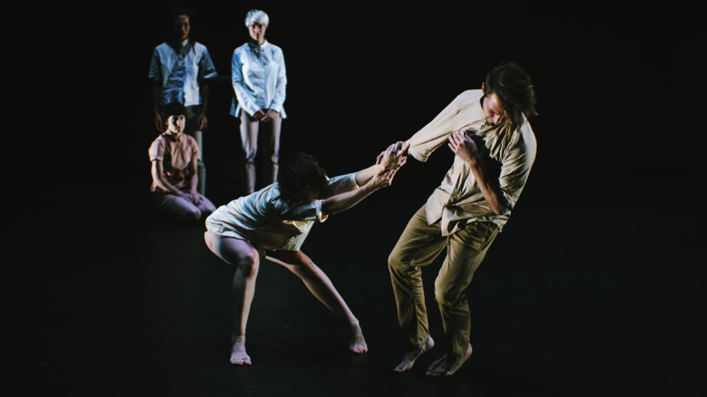 Le poids et la douleur du passé sont illustrés par les personnages figés, en retrait ou dans la pénombre. Ils deviennent témoins de ce qui se passe en lumière, vécu « au présent » par les personnages à l’avant-scène. Les danseurs qui y évoluent tour à tour deviennent porteurs des blessures et des échecs du passé. Une douleur qui reste en sourdine dans l’évolution et la présentation des personnages, mais qui semble « responsable » de leur incapacité à conclure des relations satisfaisantes.
