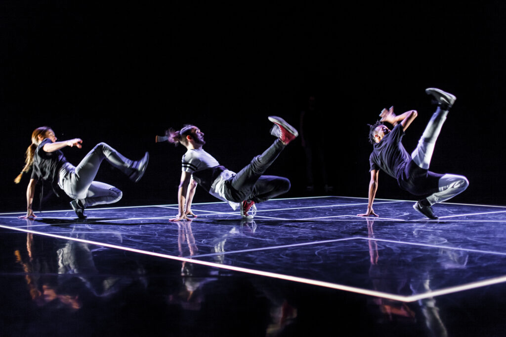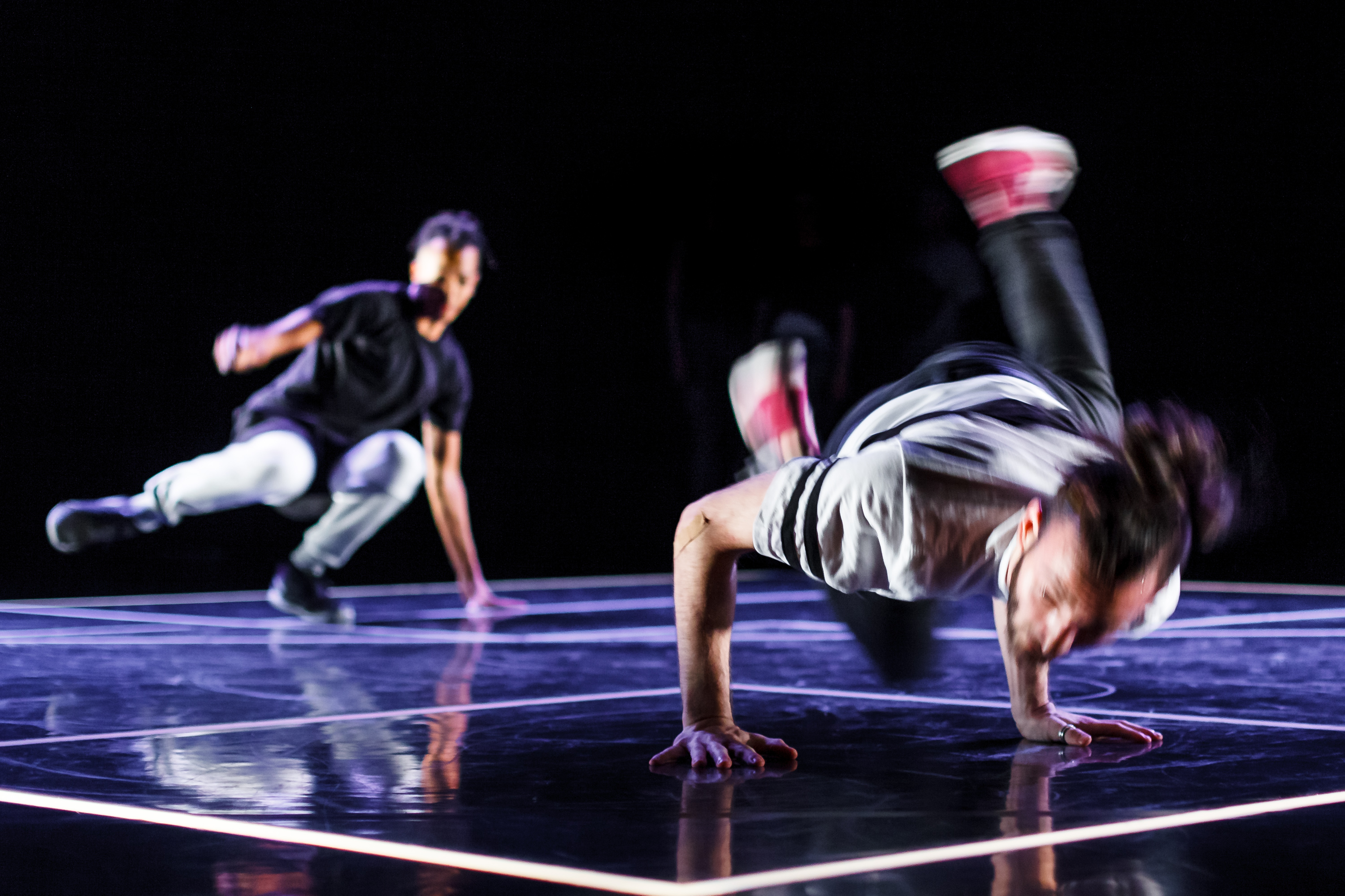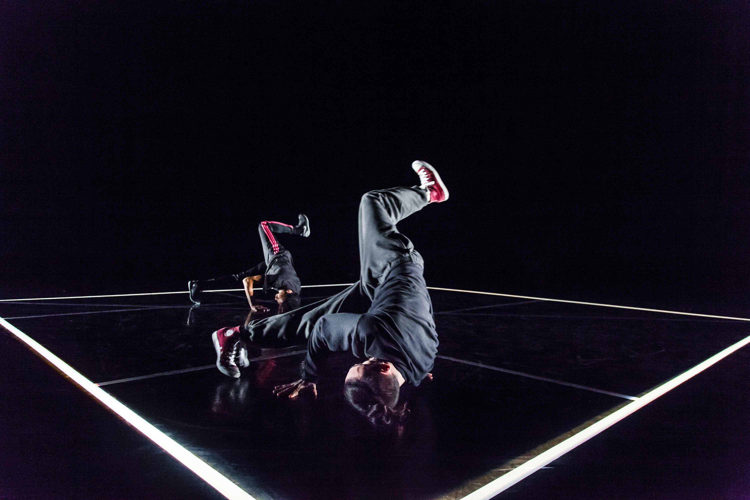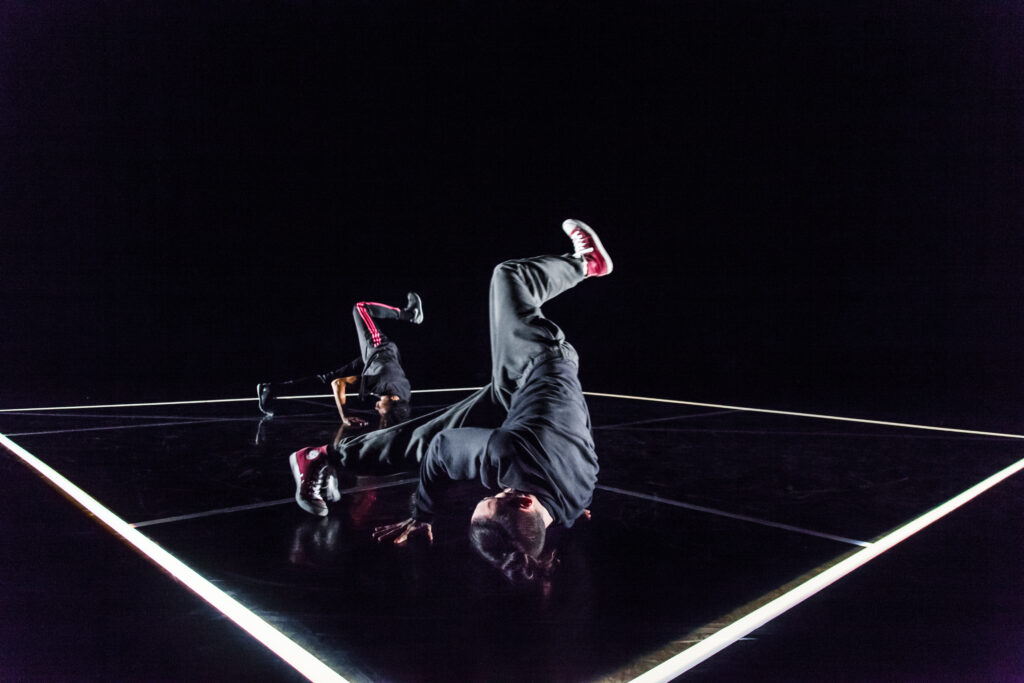 De manière sobre et totalement efficace, différentes figures géométriques, délimitées par une lumière blanche, apparaissent au sol. Chacune de ces formes devient le cadre d’une section du spectacle. Chaque section utilise un style différent de danse urbaine et chaque danseur y trouve une place privilégiée lui permettant d’intégrer son identité et son individualité. Un lien organique entre les différentes sections est fourni par l’apparition-disparition des interprètes et leurs regroupements ponctuels dans des sections de groupe.