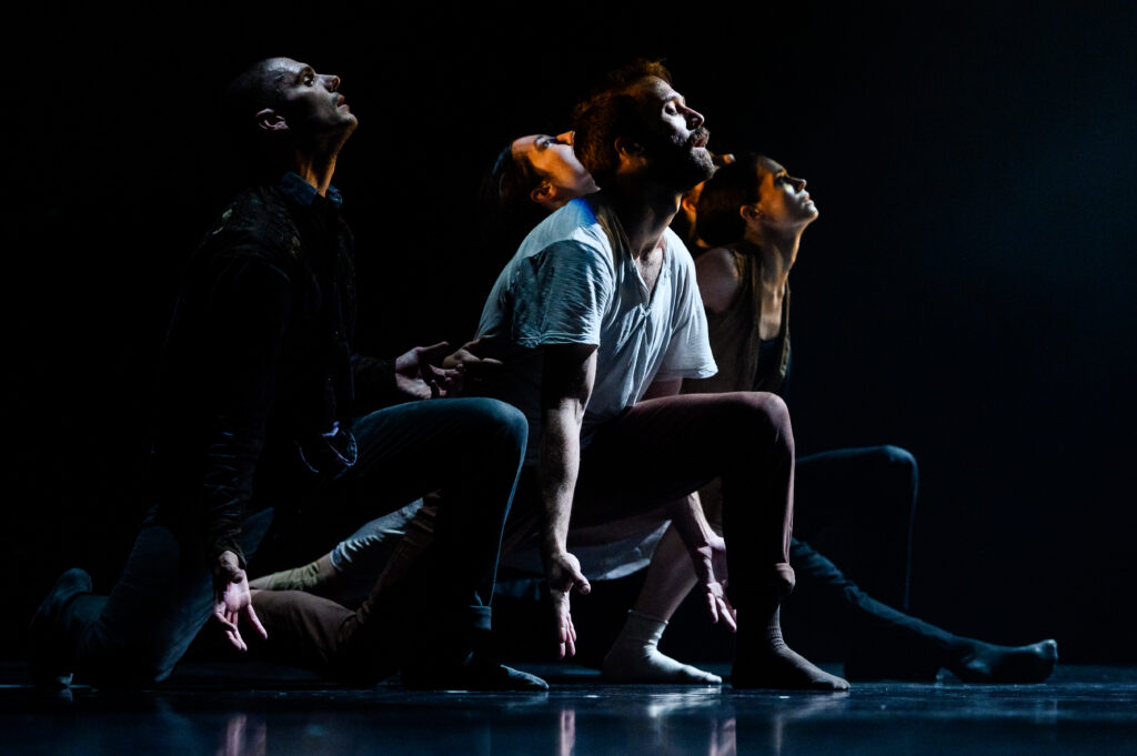 La courte bande-annonce du spectacle met la table vers une proposition artistique baignant dans le mystère et le chimérique. Très recherché visuellement, le spectacle présente cinq personnages en quête de leur avenir. Sous des projecteurs aux rayons d’action souvent très concentrés dans le temps et dans l’espace (on pense ici à leurs spectacles précédents ainsi qu’à The Black Piece d’Ann Van Den Broek présenté l’an dernier), on les voit se débattre à travers des mouvements complexes et saccadés. On les voit tomber et disparaître. On les voit étendus ou roulant au sol, tournoyant près d’une figure difficile à décoder dans l’obscurité. Le mystère et la magie y sont la norme. La réalité n’est jamais complète et l’imagination du spectateur peut s’emballer.