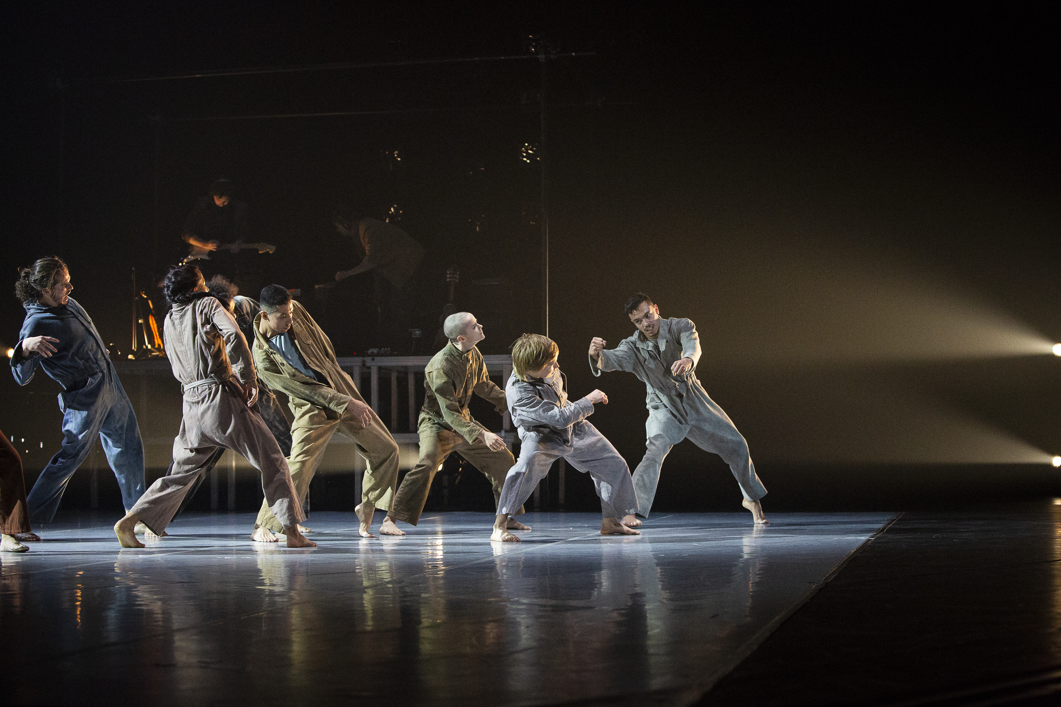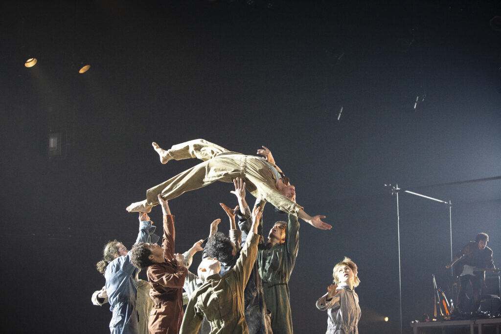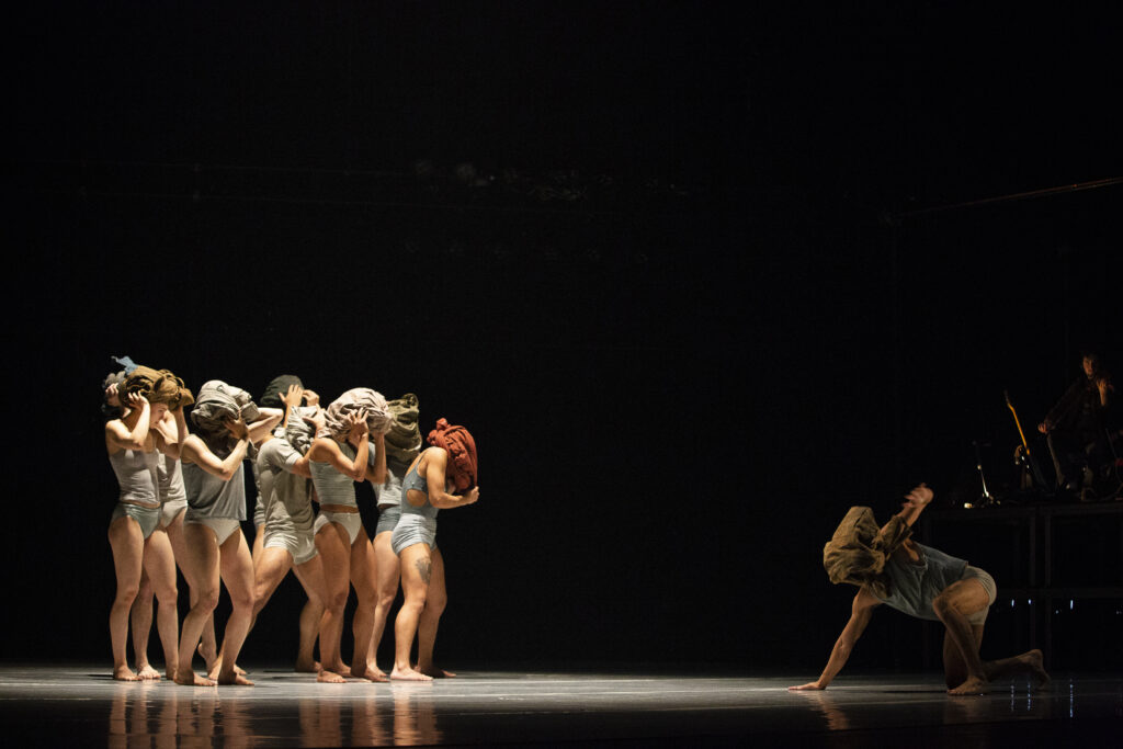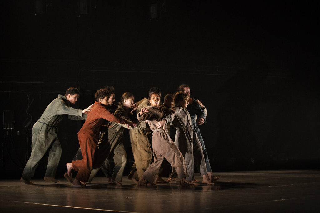 Mettant en valeur dix danseurs formés à la Méthode RUBBERBAND dans des mouvements athlétiques et énergiques, la danse est indubitablement rattachée à l’époque contemporaine par ses thèmes et ses recherches. Comment intégrer les influences du passé pour trouver sa place dans la société actuelle? Comment interagir avec les autres membres de sa communauté afin de faire fructifier celle-ci sans s’oublier? Dans la recherche gestuelle pour la création du spectacle, chaque interprète a eu la possibilité de plonger en lui-même pour personnaliser la Méthode RUBBERBAND, l’enrichir à travers des performances athlétiques, mais aussi la transcender en y intégrant des notions de souffle et de micromouvements. Ces notions ont pu mener à une certaine exploration de la souffrance, de la tristesse et du chaos, et même à une certaine violence, physique ou psychologique.