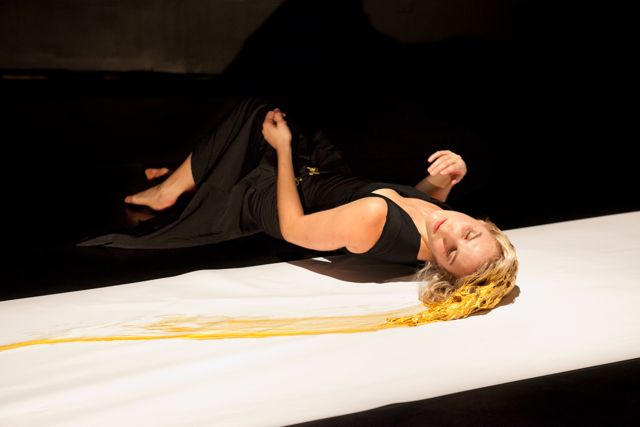 Fascinée par la calligraphie japonaise, la chorégraphe et interprète s’adonne à l’exercice délicat de la transposition du geste de la main manipulant le pinceau en un mouvement de tout le corps.