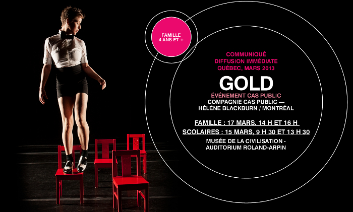 Même si la pièce a été créée pour les enfants, la prouesse technique exigée par la chorégraphie en met aussi plein la vue aux adultes. Parsemée de duos époustouflants ainsi que de séquences de groupe rapides et précises, GOLD a trouvé la formule magique pour émerveiller l’enfant en chacun de nous. – Oliver Koomsatira, interprète en danse contemporaine.