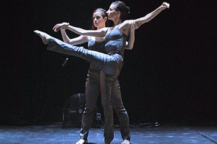 La structure du spectacle Air, du premier segment du moins, est encore incertaine. La narration, assurée par Karine Ledoyen, piétine, le chant dérange, et les mouvements n’arrivent pas à s’arrimer les uns aux autres pour nous amener ailleurs. On se bute à une série de tentatives, d’explorations et d’essais qui ne sont pas arrivés à terme. Mine, canari, mort, guitare électrique, vie parallèle… Un magma d’idées brutes, qu’il faudrait polir et sortir du roc.