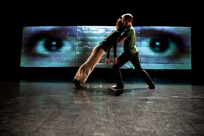 Dans la scène finale, deux corps cambrés, déséquilibrés, jouent à se rattraper l’un l’autre, dans un jeu de rôle sans cesse interchangé: celui qui supporte devient le supporté, et vice-versa. Là encore, la gestuelle est fluide, aérienne, continuelle, organique.