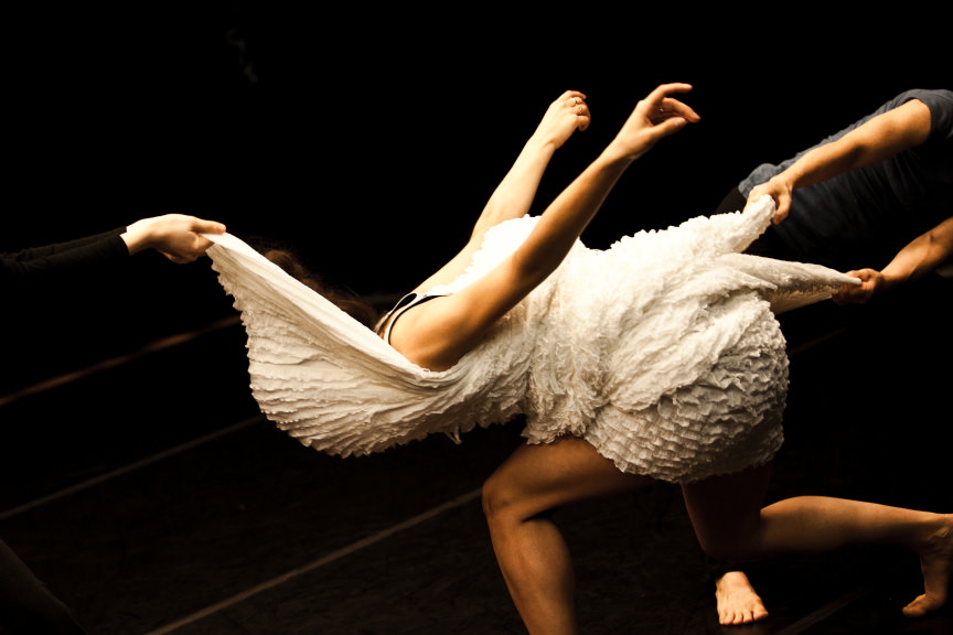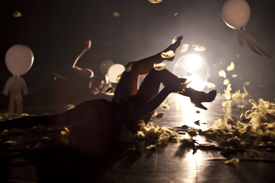 Dans le sillon de Julio et Romette et de Cibler, Karine Ledoyen poursuit une recherche chorégraphique tissée d’une trame narrative soutenue par une scénographie inspirée, l’élément air devenant ici à la fois visuel et sonore. Mettant en scène quatre femmes chargées d’histoire, la pièce, ludique, se développe sur le thème de l’individu et de la collectivité, nous donnant accès à un univers délicat, porté par la poésie des images et où la gestuelle en rondeur et en pesanteur s’habille de textures et de formes surprenantes.
