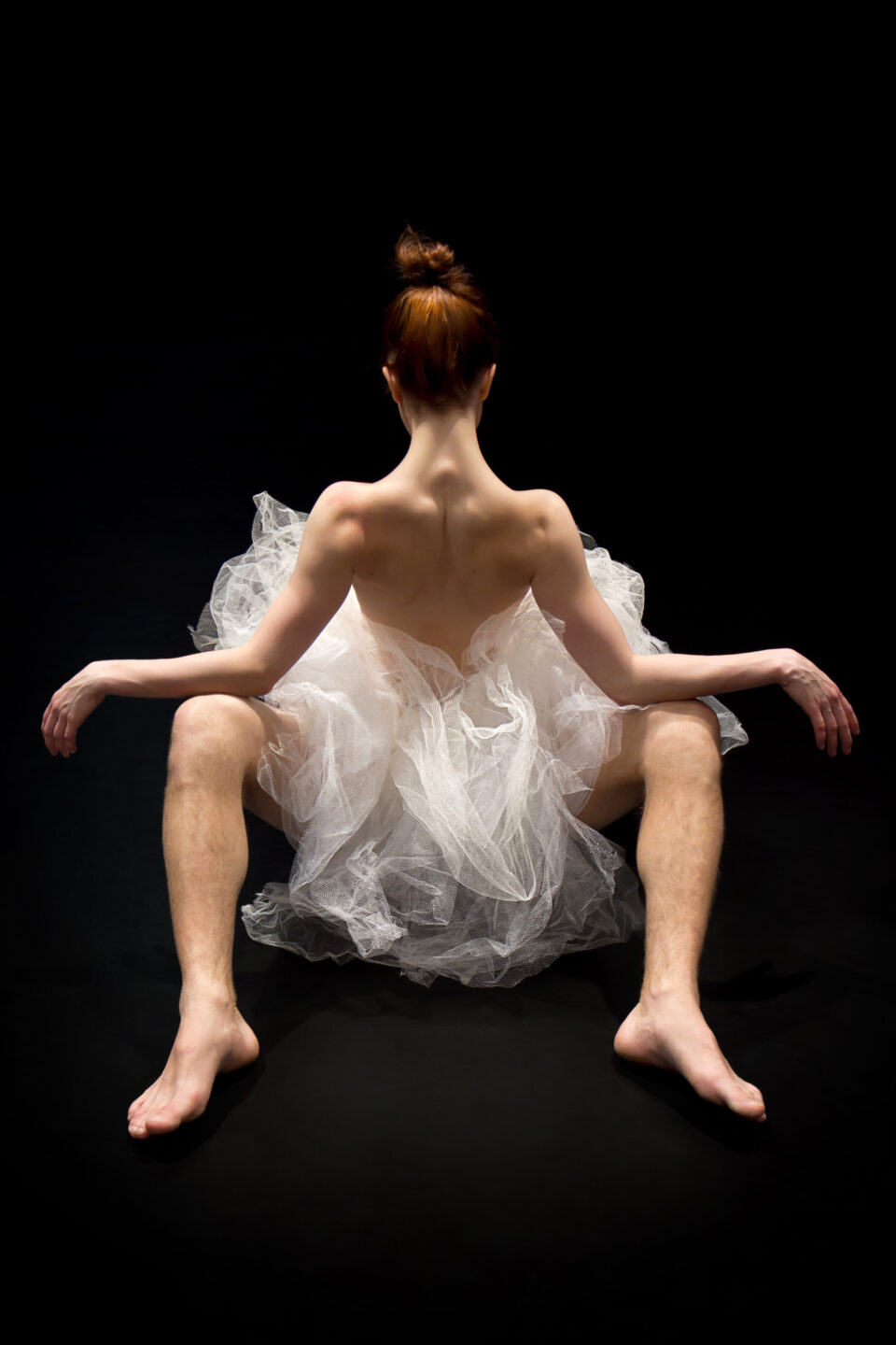 Une image. Forte. Celle des jambes entrouvertes d’un homme et d’une femme qui le chevauche. Vêtue d’un simple tutu, dos à l’objectif. “Je suis partie de cette photo-là pour créer. Un théâtre m’avait demandé quelle serait ma prochaine production et comme je n’avais rien de fait, je me suis imposé cette image pour avoir quelque chose à leur proposer. C’est comme ça que le projet est né.”