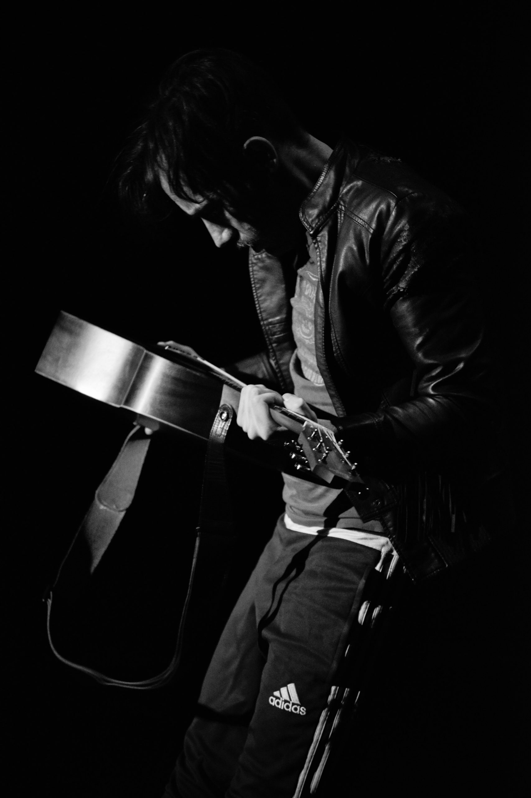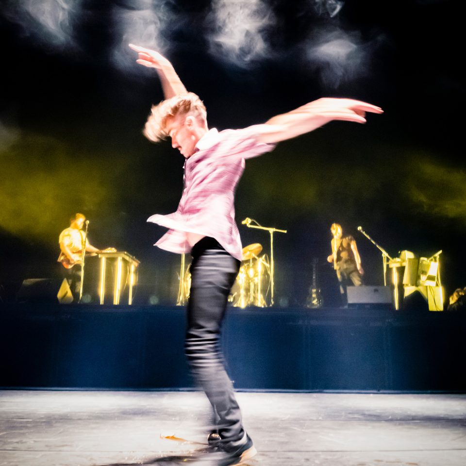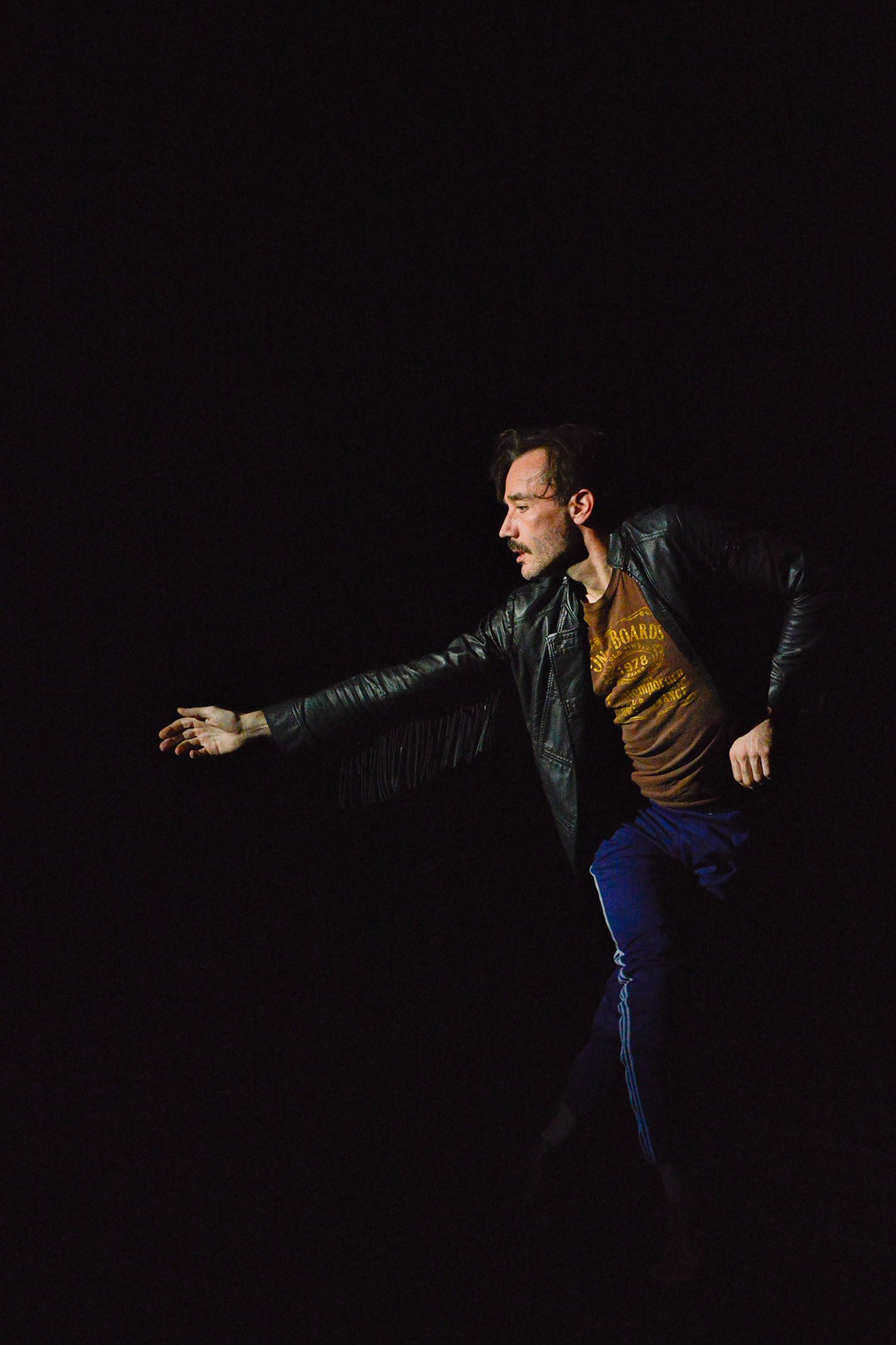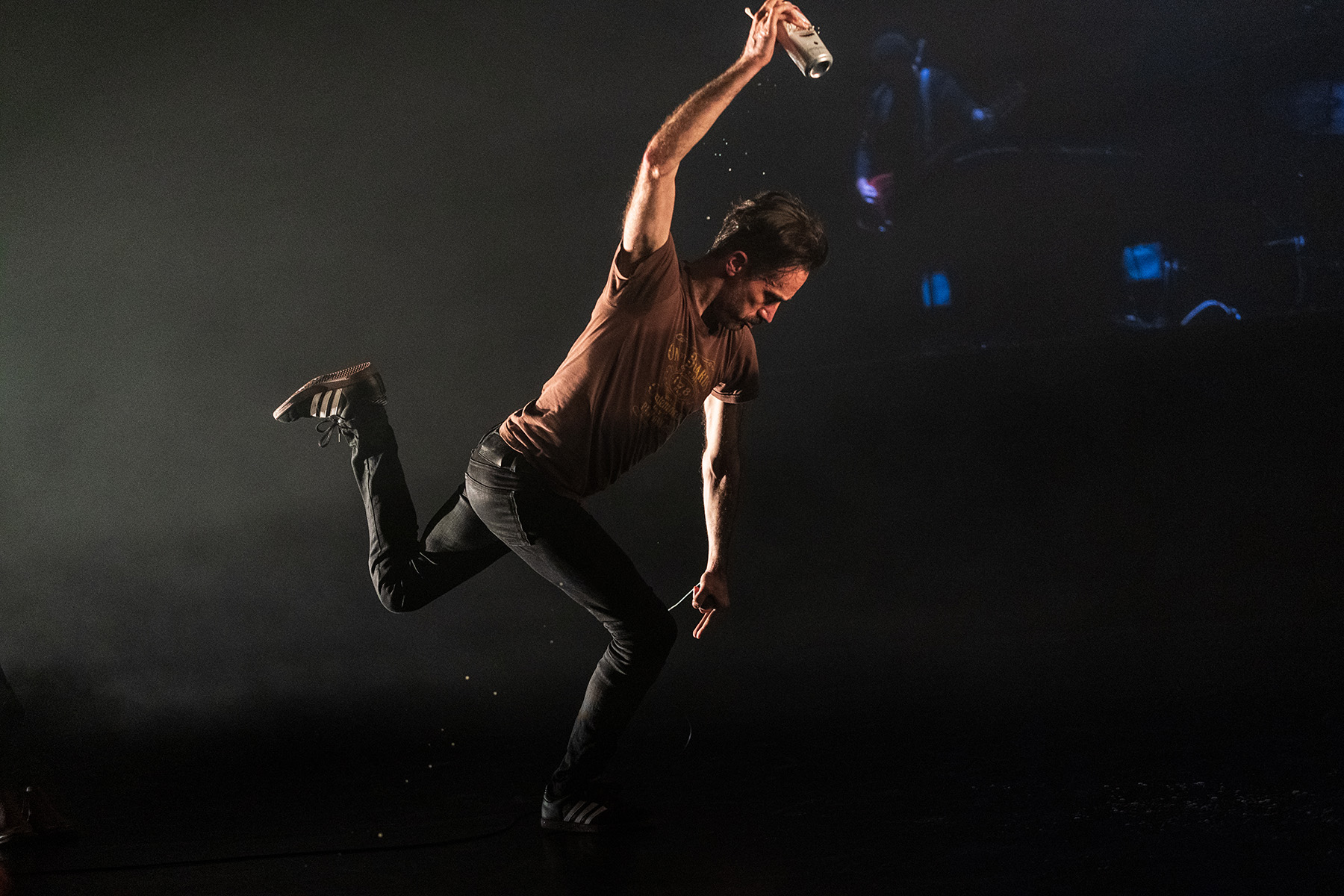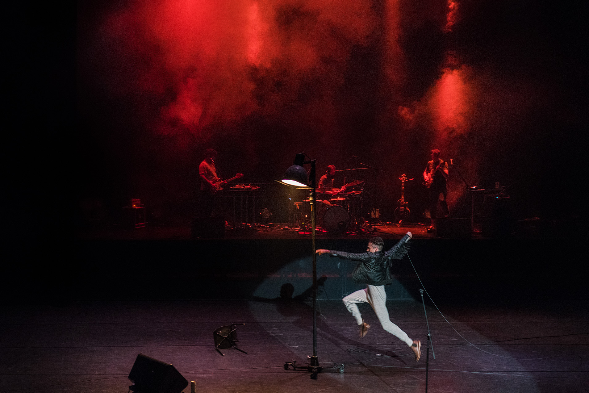 “I have three problems: capitalism, patriarchy and the fact that I don’t know how art is going to save us.” With his singular movement vocabulary, his guitar and three musicians, Frédérick Gravel wants to blow everything up, again. In a choreographic rock concert adorned with corrosive phrases, he broadcasts his vision of the world, his desire to smash all that is certain and sounds the call for total honesty. With the air of an unyielding hooligan, Gravel unsettles with the spectacle of his own vulnerability.