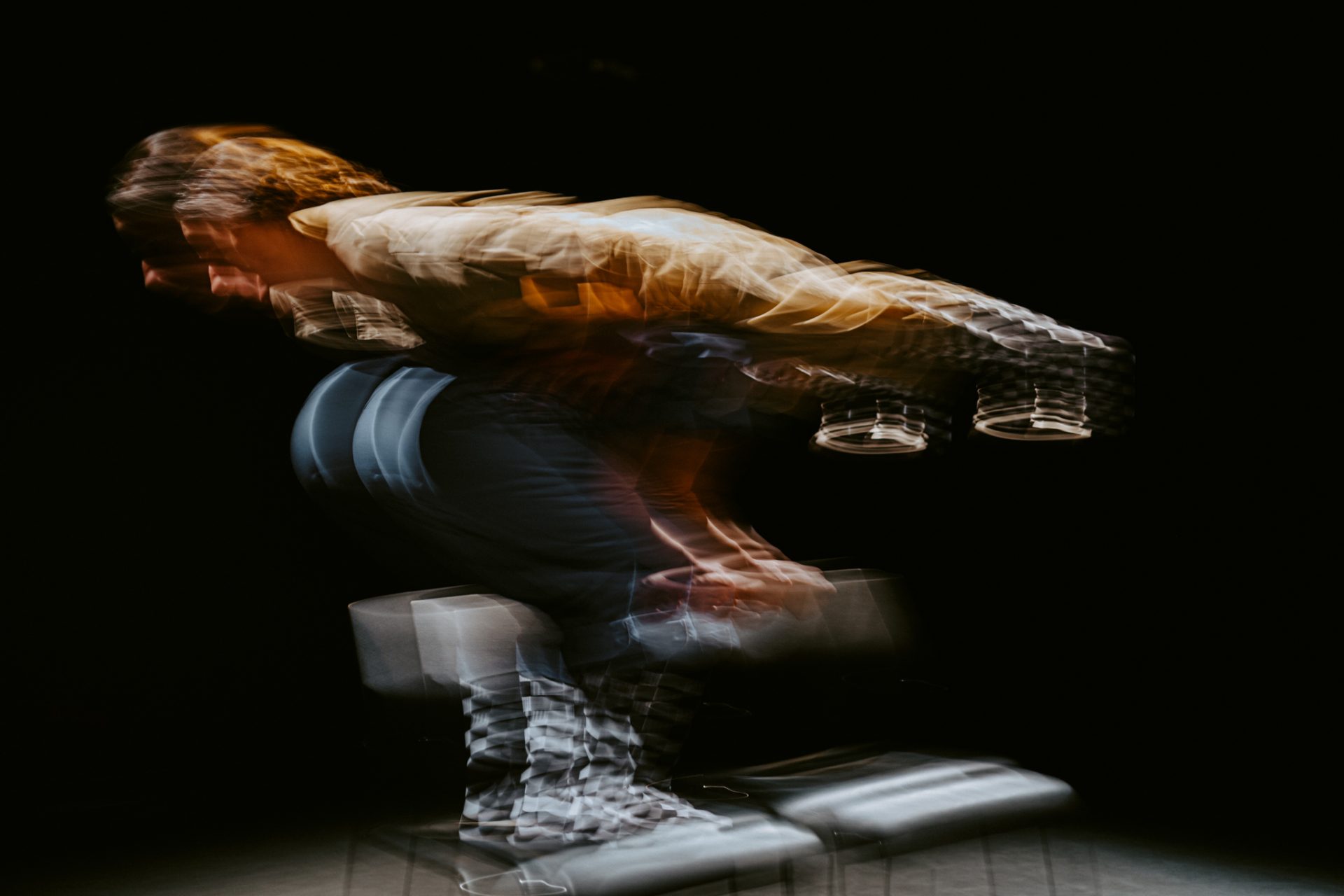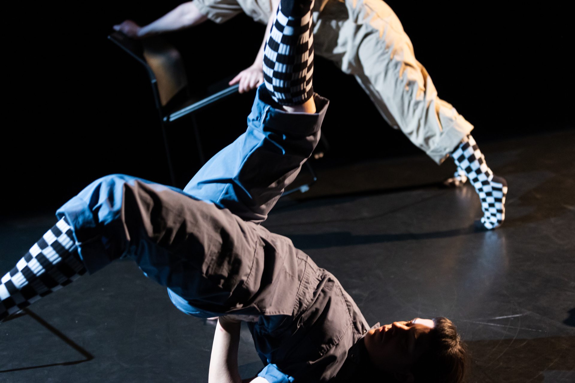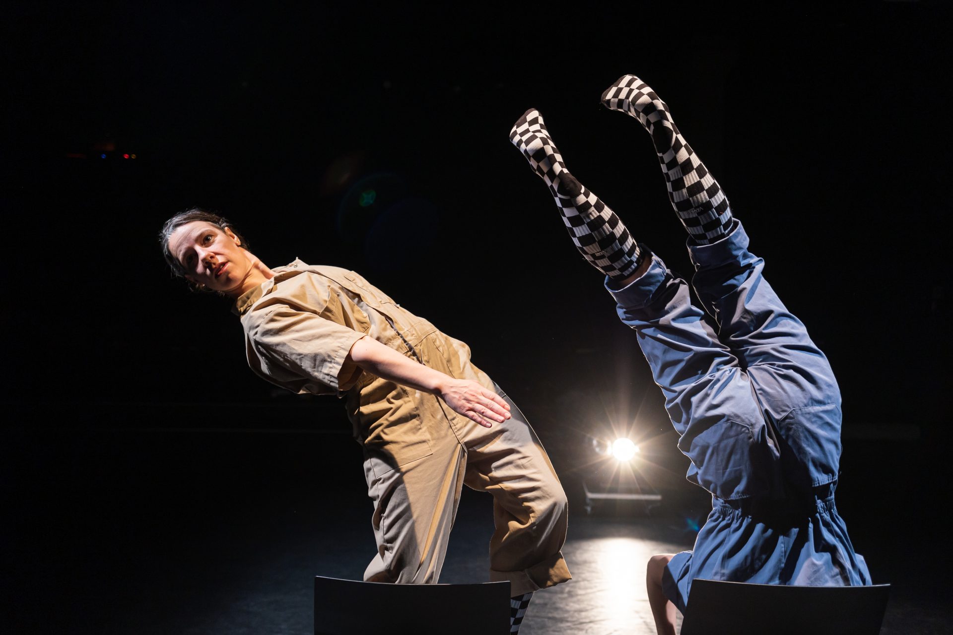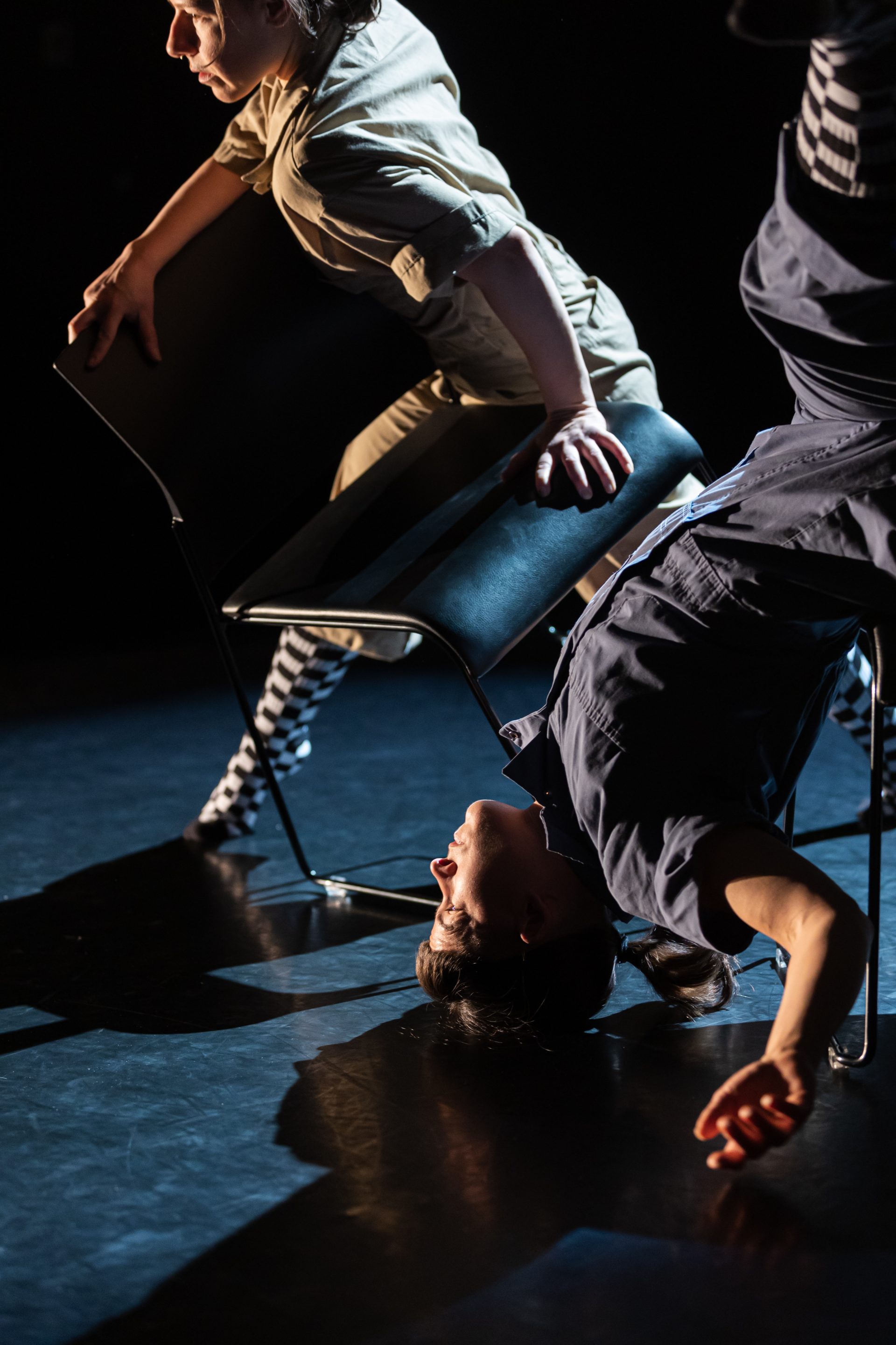 Balancing on the narrow surfaces of two chairs, the performers grapple with discomfort, pushing their limits, seeking to expand space both within and around themselves. Like a road trip, the piece unfolds through landscapes and encounters that leave their mark.