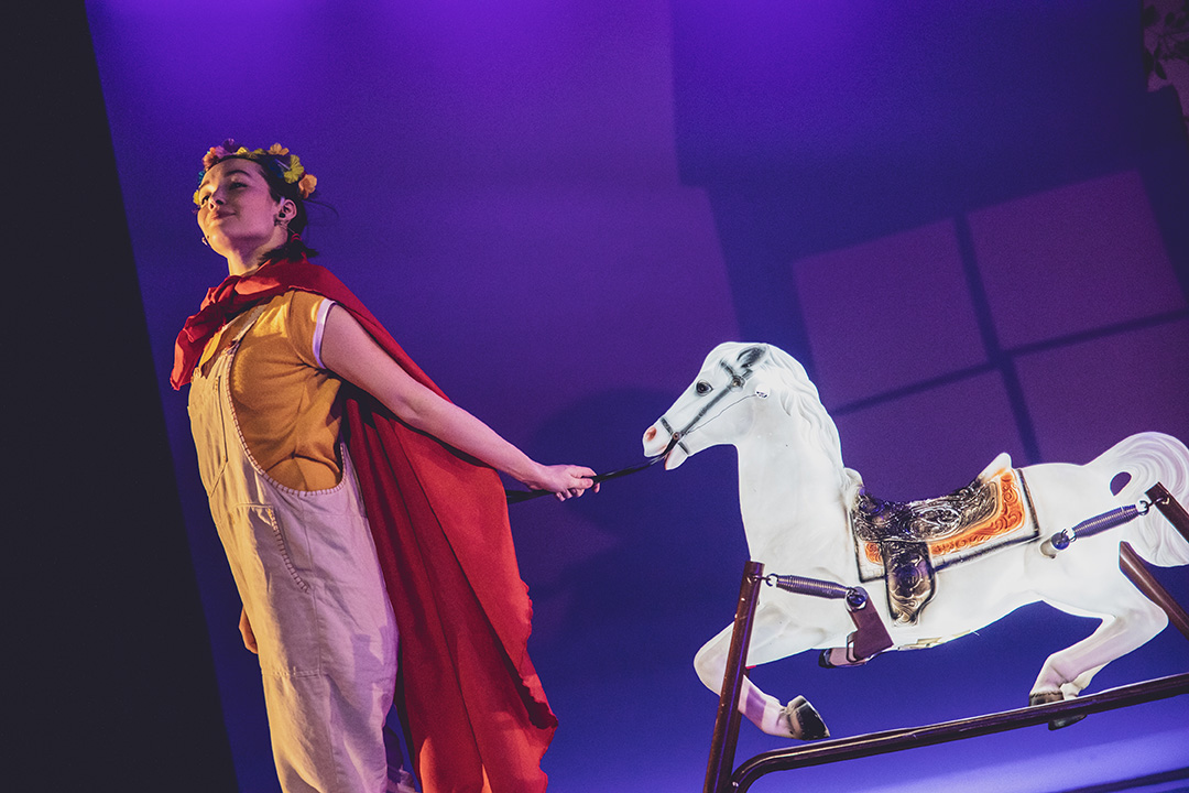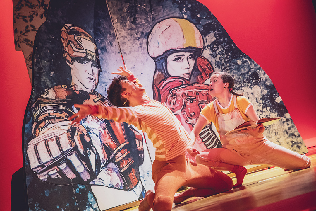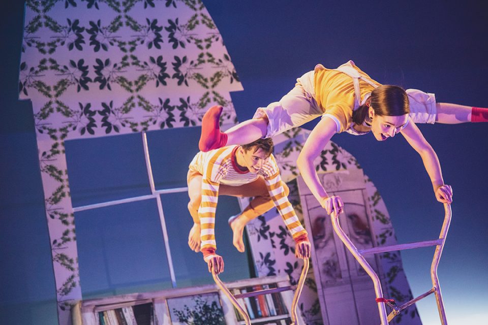 On a rainy day at home, a brother, sister and their cat Piano outfox boredom with their creativity. Raised on the songs of Gilles Vigneault, Claude Léveillée and Félix Leclerc, this final choreography by Pierre-Paul Savoie (1955-2021) skilfully slides between passion and poetry, softness and exuberance. A homage to the music of Quebec that celebrates children’s limitless imaginations!