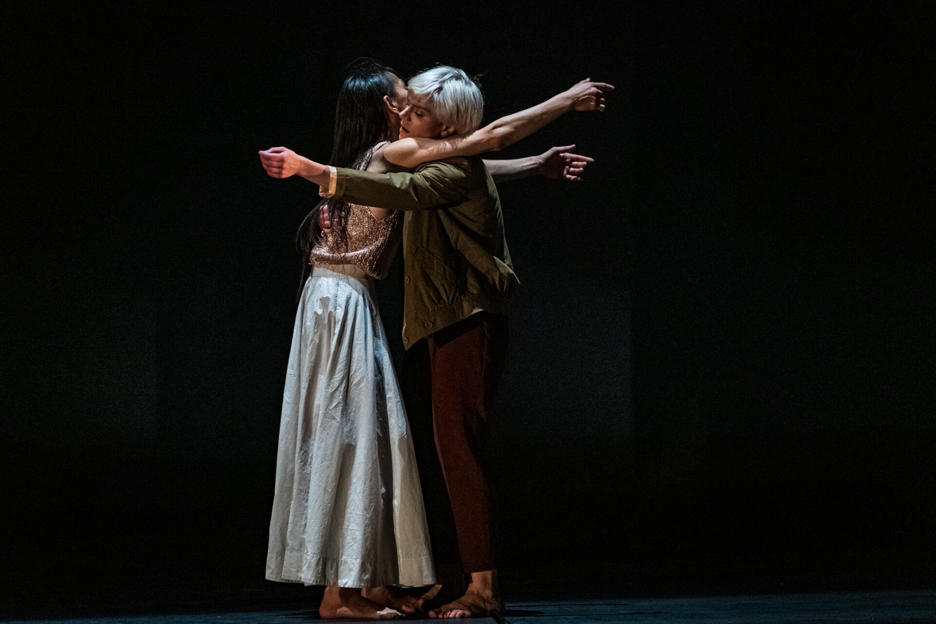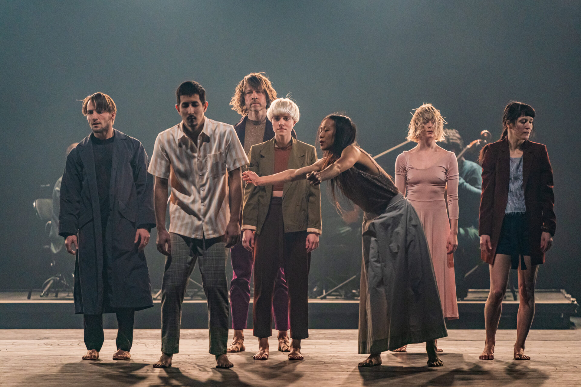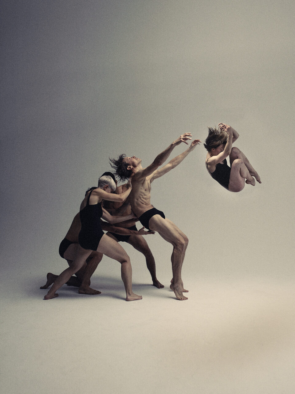 After the remarkable presentation of her first international production Beating, Virginie Brunelle brings us a daring creation and her most ambitious to date. Les corps avalés is a moving human odyssey where the choreographer’s sensitive intelligence leads the audience to a lighted introspection. A living fresco depicting present-day society, the work explores the coexistence of distress and hope, of brutishness and compassion. It questions the legacy and role of humans on Earth, in an uprising that gives hope for the creation of a collectivism that is directed at the other. Mastering a delicate balance between expressiveness and the vigorous physicality of gestural language, Brunelle invites the Quatuor Molinari on stage and directs eight dancers to depict a tired humanity in search of gentleness and solidarity. Elegant and intoxicating, the dance is also healing.