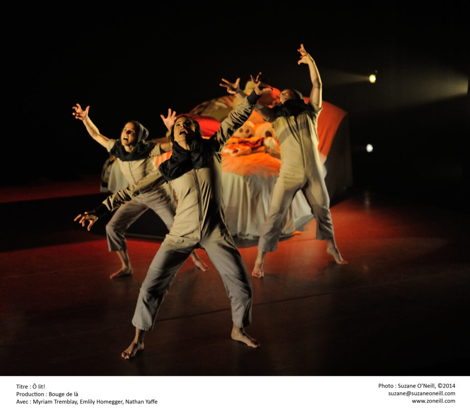 Avec Ô lit!, Hélène Langevin réussit son pari de nous faire vivre quatre étapes de l’enfance à travers le microcosme du lit. Placé au centre de cette création, le lit n’est plus un simple meuble. Il devient tour à tour berceau douillet, lieu de rêverie ou encore lieu de jeux et de découvertes. En plus de la justesse dans le travail de la gestuelle, Hélène Langevin et ses cinq interprètes offrent une création remplie de souvenirs, de rêves et d’humour.