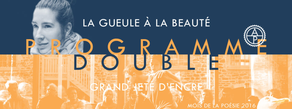 La gueule à la beauté et Grand jeté d’encre, c’est le premier programme double du Mois de la Poésie! Le vendredi 4 mars à 20h à la Maison de la littérature.