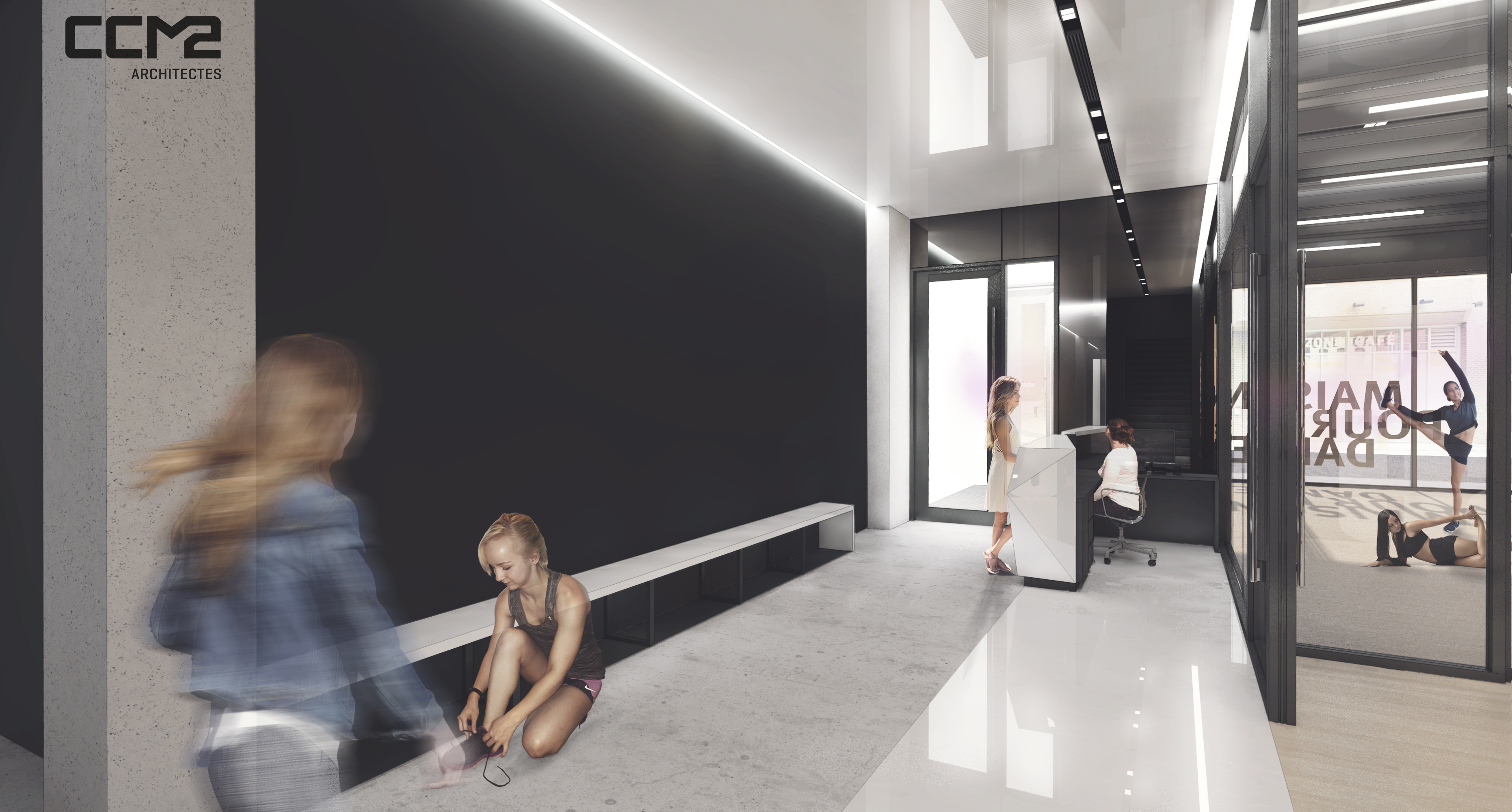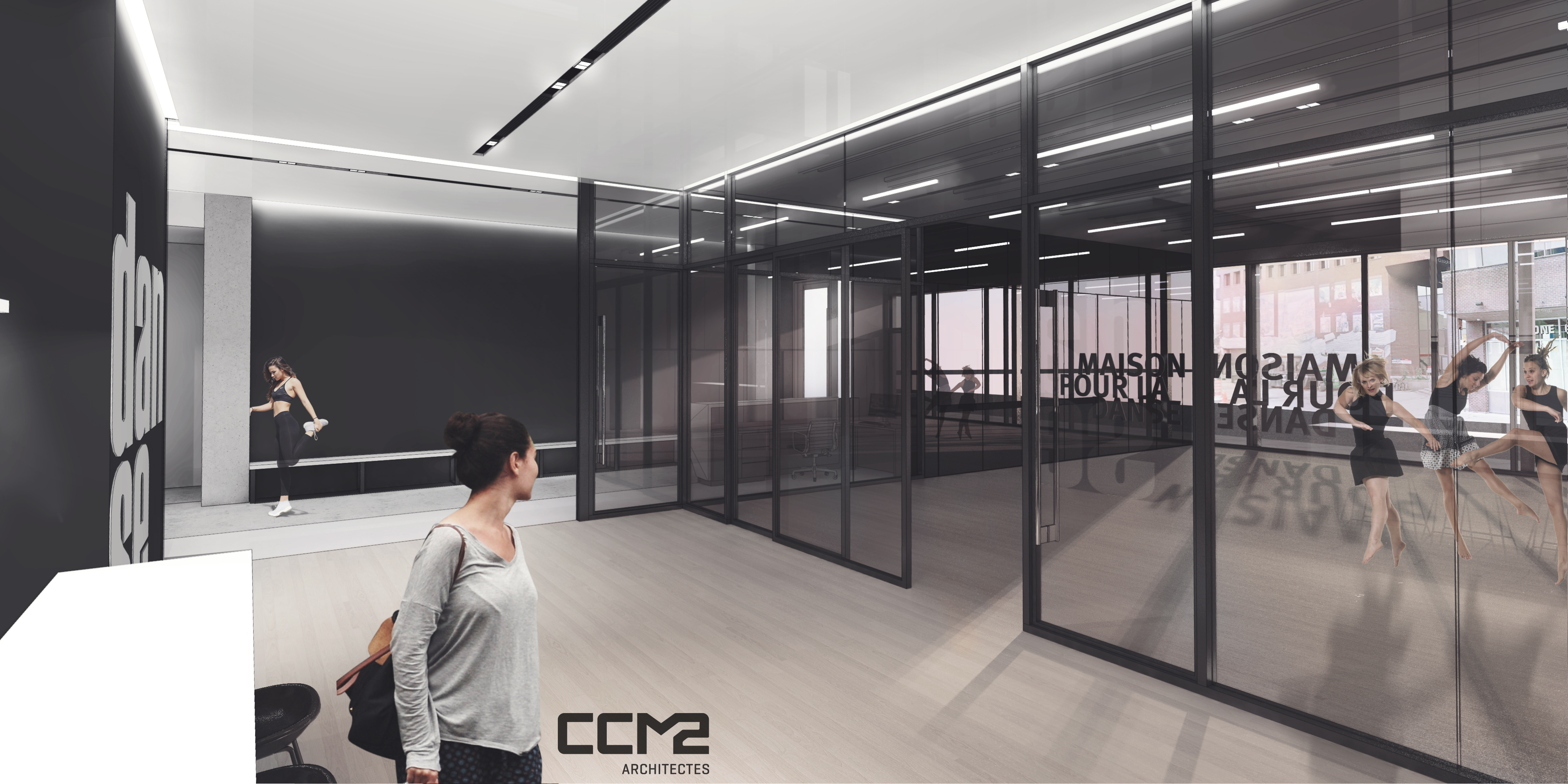 Aujourd’hui, nous vous invitons à vivre l’expérience bien spéciale d’entrer dans la Maison pour la danse de Québec. Évidemment, pas à proprement dire, mais virtuellement grâce aux nouvelles ambiances du rez-de-chaussée produites par nos concepteurs de CCM2 Architectes. Avec elles, le niveau d’anticipation de l’ouverture de ce nouveau centre de services dédié aux artistes professionnels de la danse vient de remonter d’un cran!