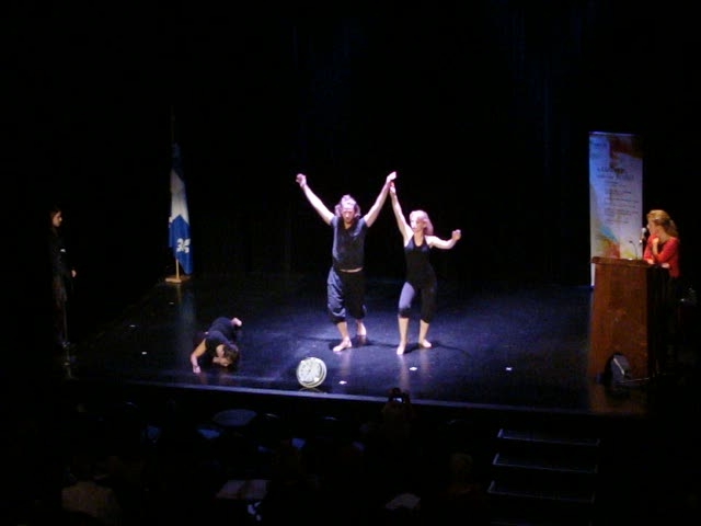 Caroline Paré et Steve Huot ont expliqué Marquer la danse et Sarah Therrien, élève du collège, a dirigé les danseurs Jean-François Duke, Geneviève Duong et Mélanie Therrien dans un des tableau de son projet d’écriture chorégraphique. Une présentation qui démontrait le travail fait avec des artistes professionnels lors du stage de réécriture du concours.