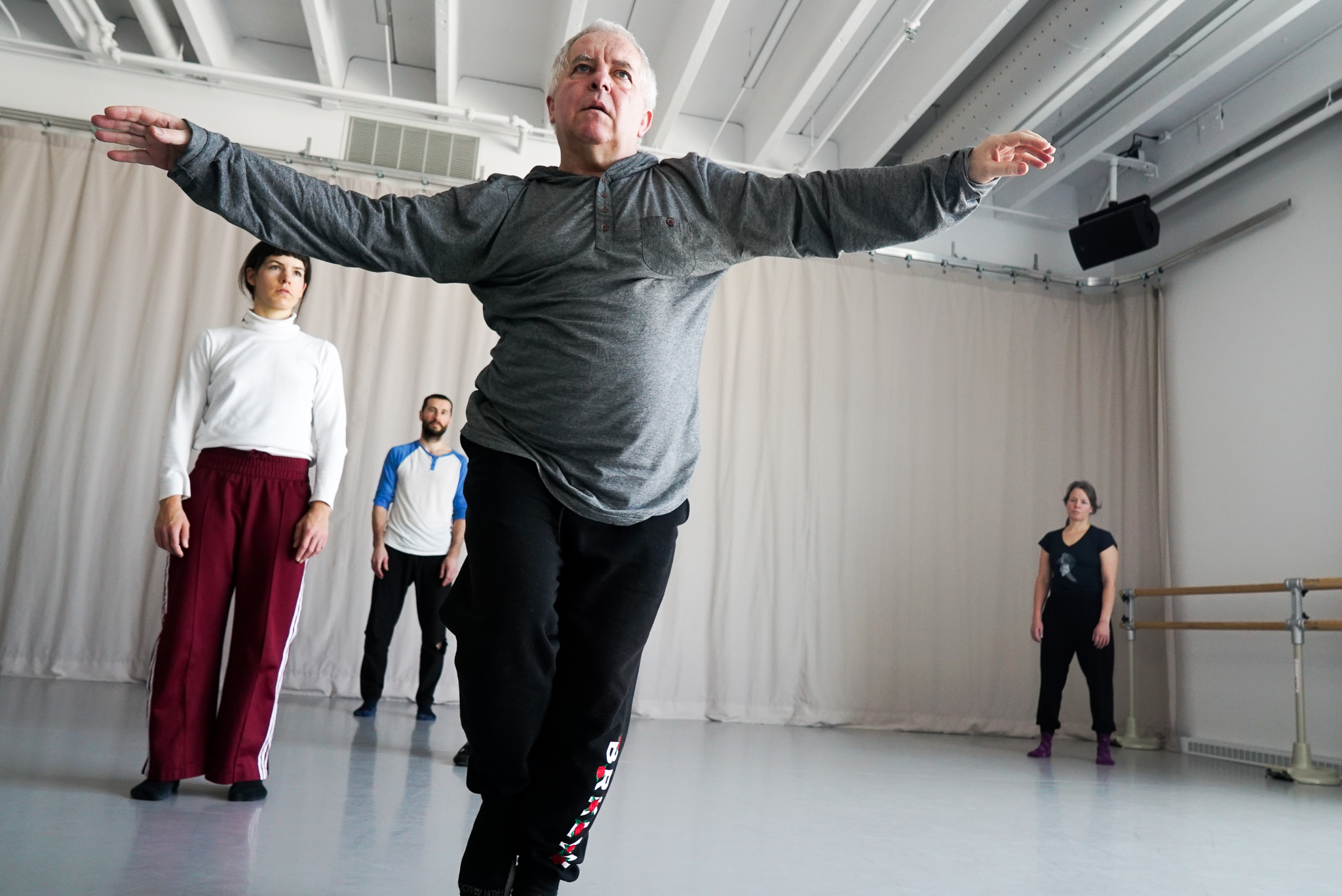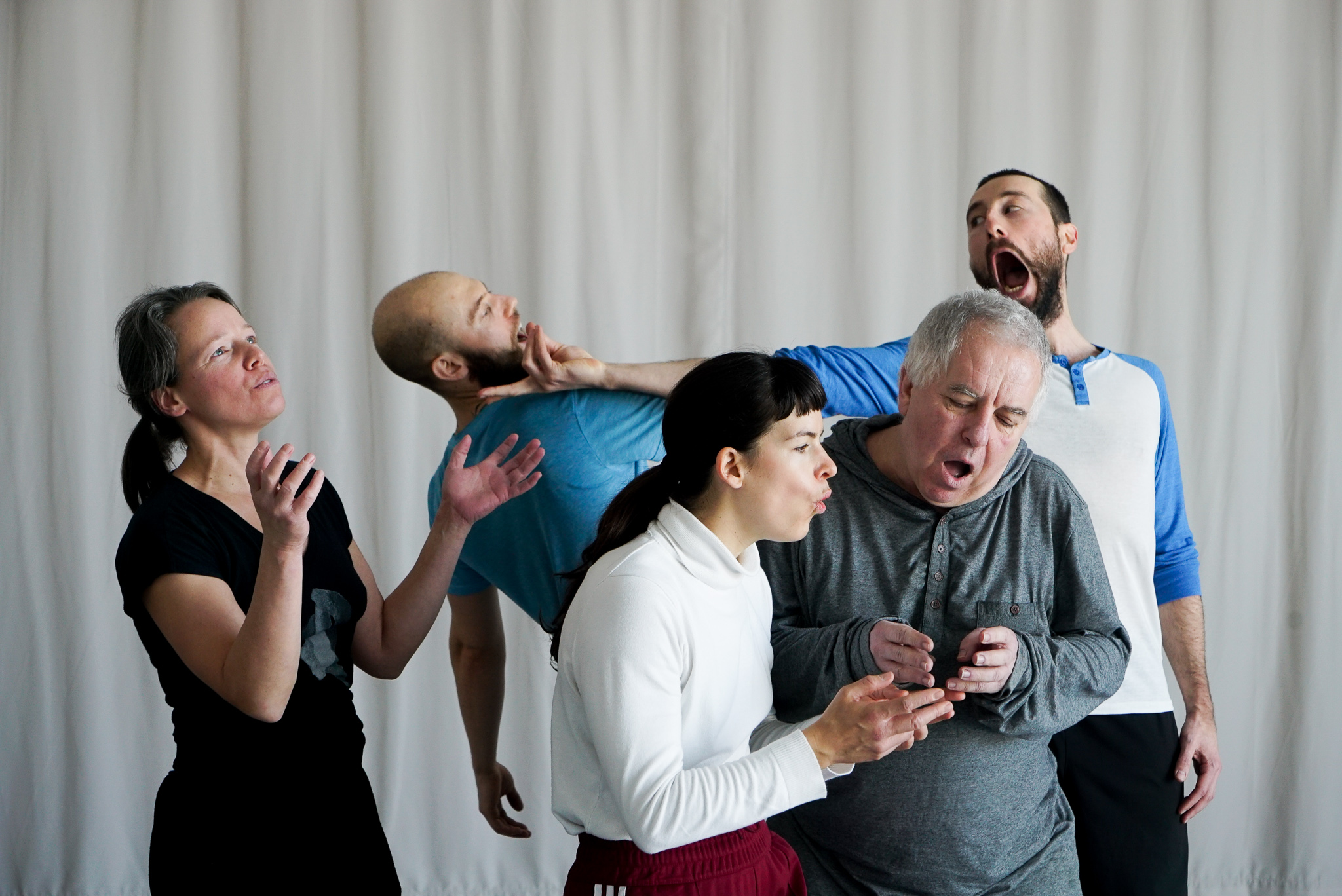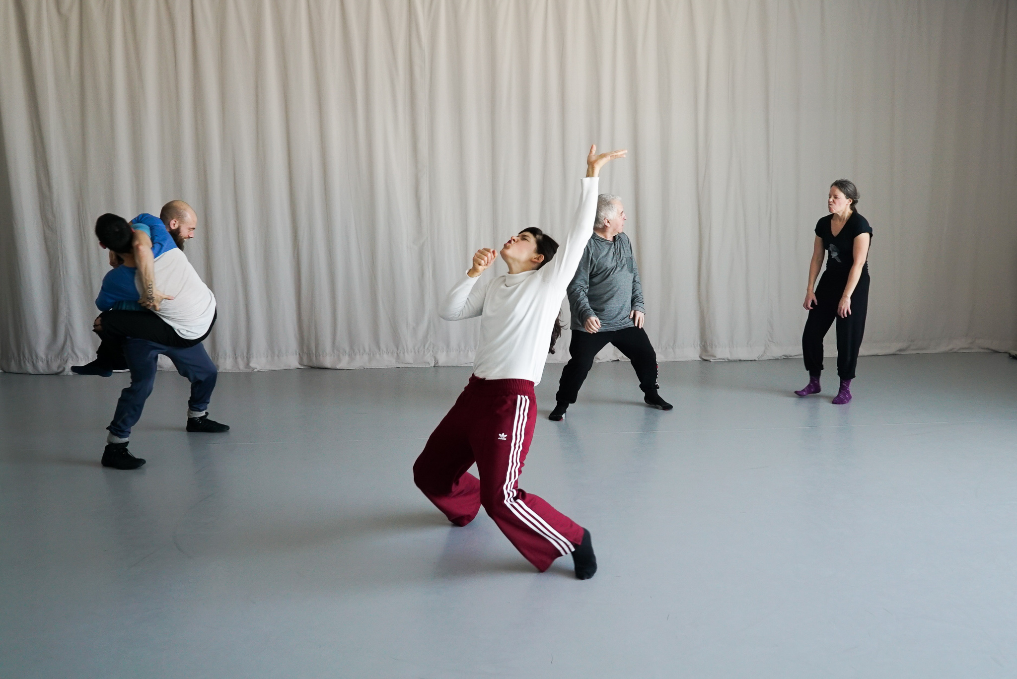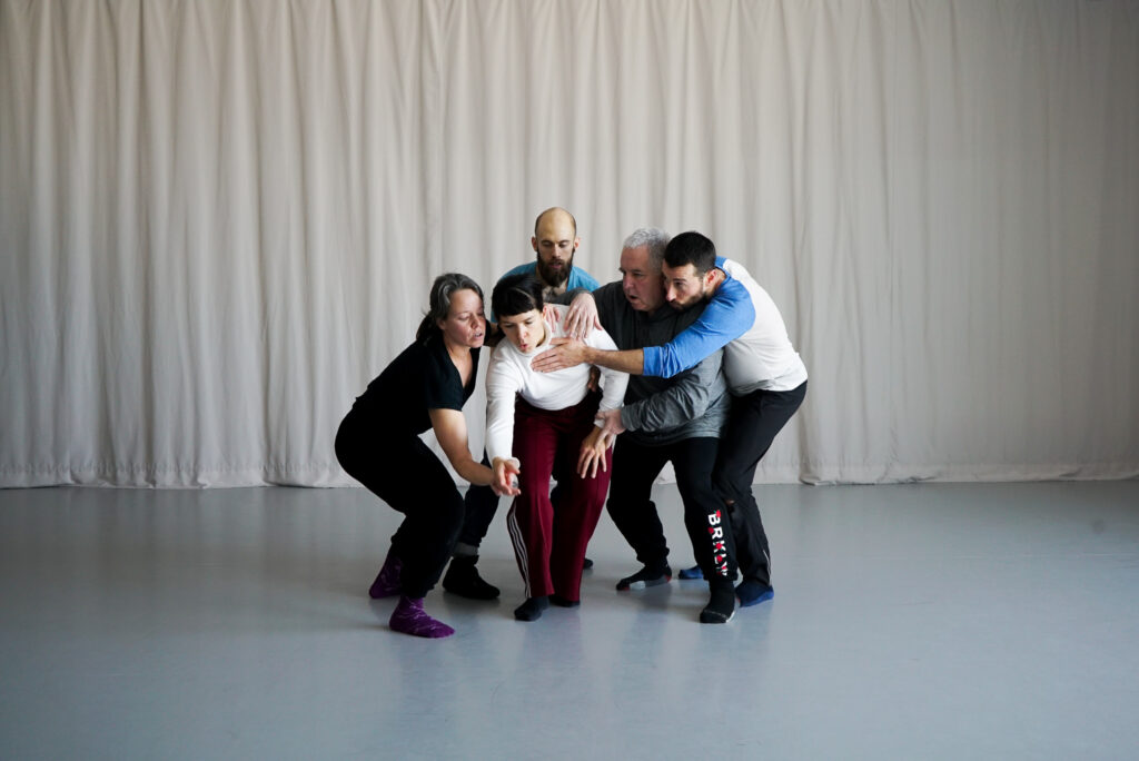 Les cinq interprètes – Julia-Maude Cloutier, Annie Gagnon, Etienne Lambert, Mikaël Xystra Montminy et Mario Veillette – étaient complétés par la chorégraphe Amélie Gagnon et la répétitrice Ève Rousseau-Cyr. L’équipe de création a profité du temps en studio pour peaufiner le matériel chorégraphique de la pièce. Rappelons que les recherches autour du projet Résilience ont débuté en 2015 et se sont échelonnées sur les cinq années suivantes à raison de quelques semaines par an.