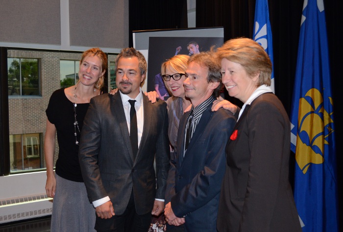 De gauche à droite : Mme Julie Lemieux, M. Steve Huot, Mme Christine St-Pierre, Me Daniel Cooper, Mme Agnès Maltais. Photo : Étienne Rivest