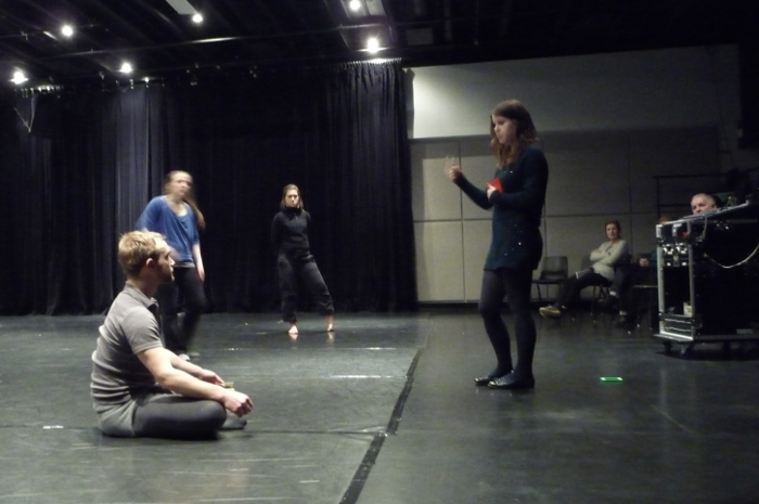 Dès 9h le samedi, appuyées par Mario Veillette, répétiteur et mentor, et Caroline Paré, enseignante au collège de Champigny, les trois élèves chorégraphes ont réalisé dans la bonne humeur et la complicité, le difficile exercice de diriger des interprètes pour mettre en mouvement leur projet et donner vie à leur danse. Trois interprètes professionnels de la ville de Québec, Anne-Pier Dion, Isabelle Gagnon et Fabien Piché ont joué le jeu avec brio, attention et talent. À cela s’ajoutait pour les élèves la direction d’une création musicale en direct avec le très inspiré, Steve Hamel.