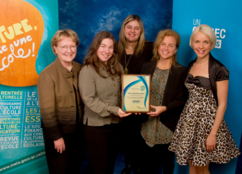 Le prix Isabelle-Aubin est décerné à un projet qui se distingue par la place accordée à la fois aux arts et à la formation artistique tout au long de la réalisation du projet et est assorti d’une bourse de 2500$ offerte par le ministère de l’Éducation, du Loisir et du Sport.