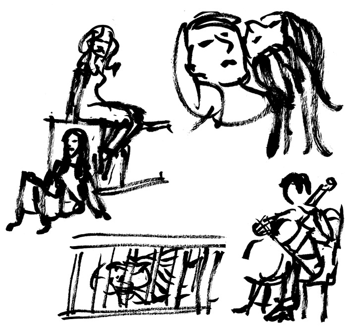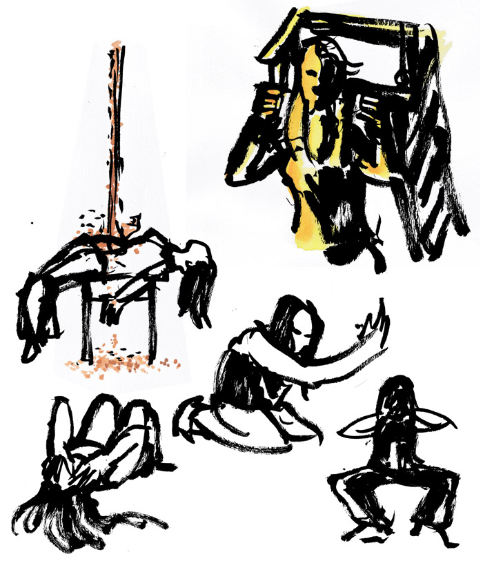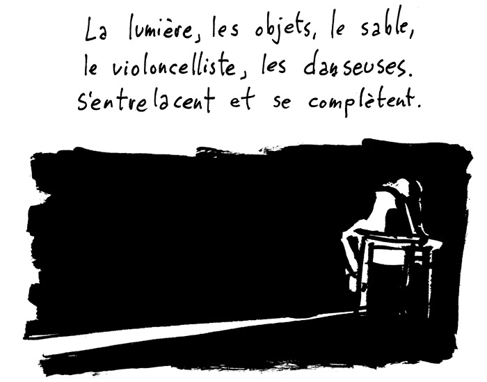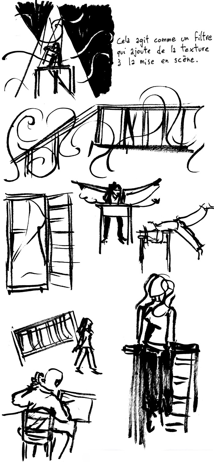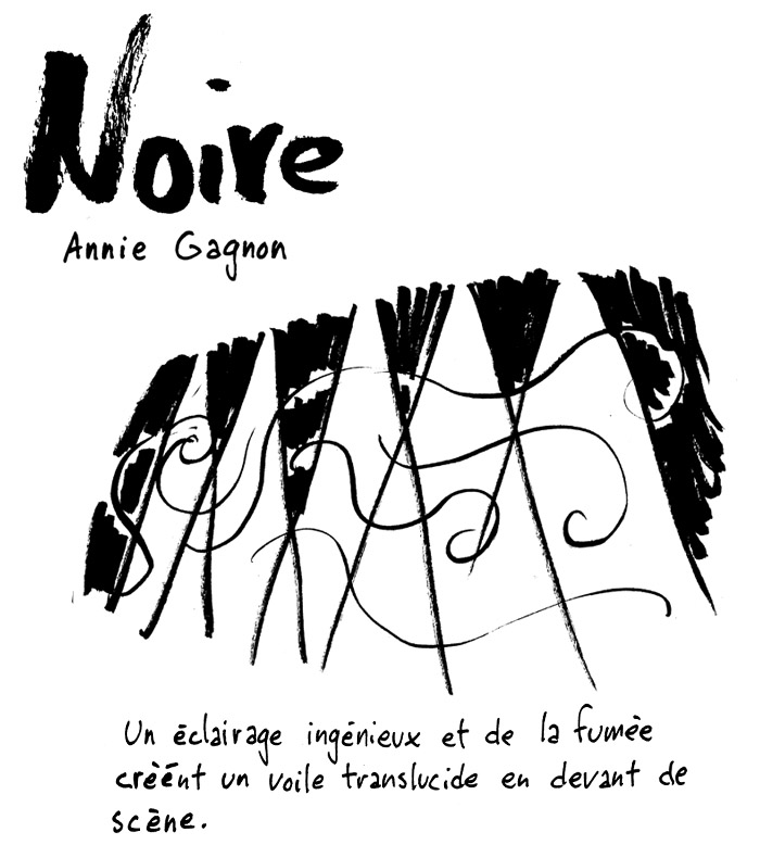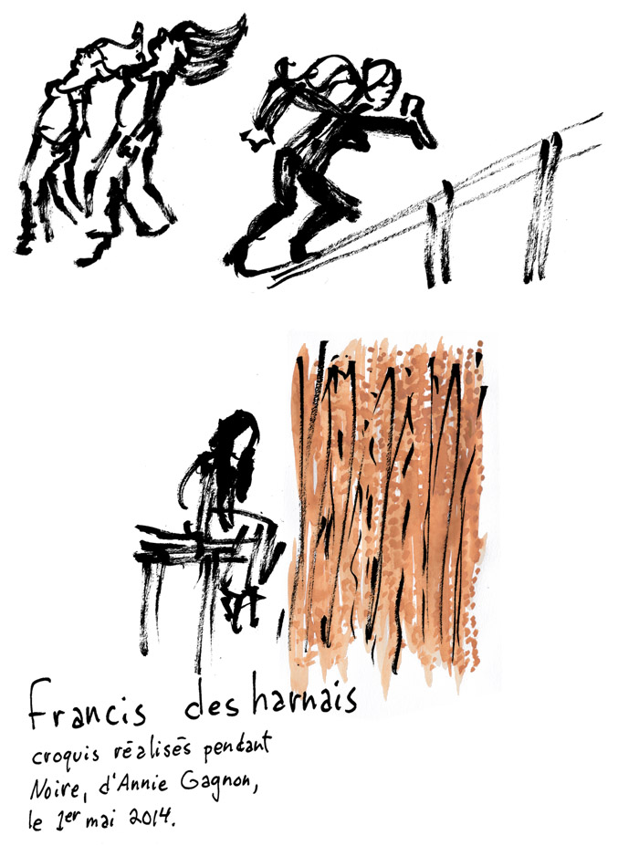 Francis Desharnais, transporté par la musique, la lumière et l’énergie de Noire, nous livre ses croquis du spectacle. Et, une fois de plus, nous tombons sous le charme de son crayon révélateur de mouvements!