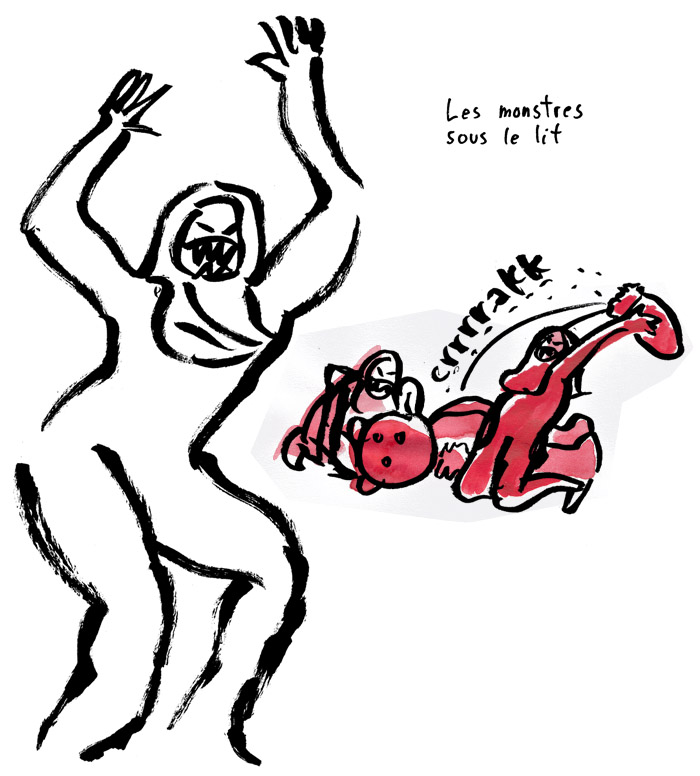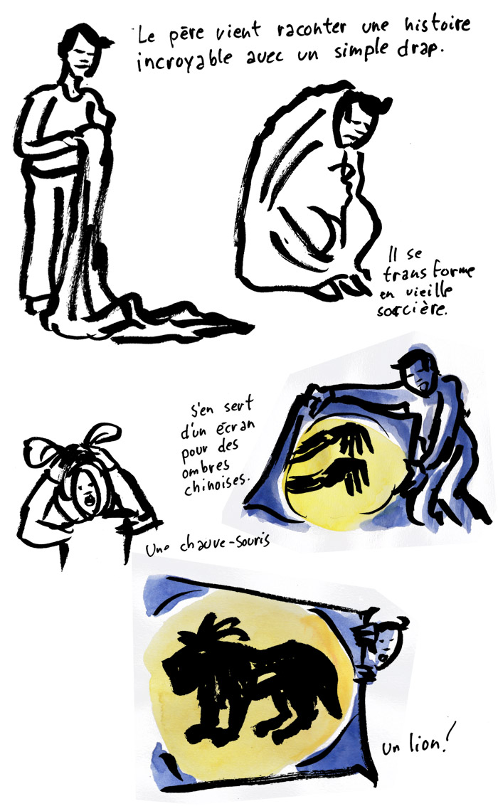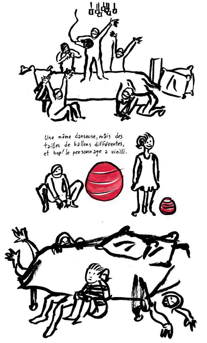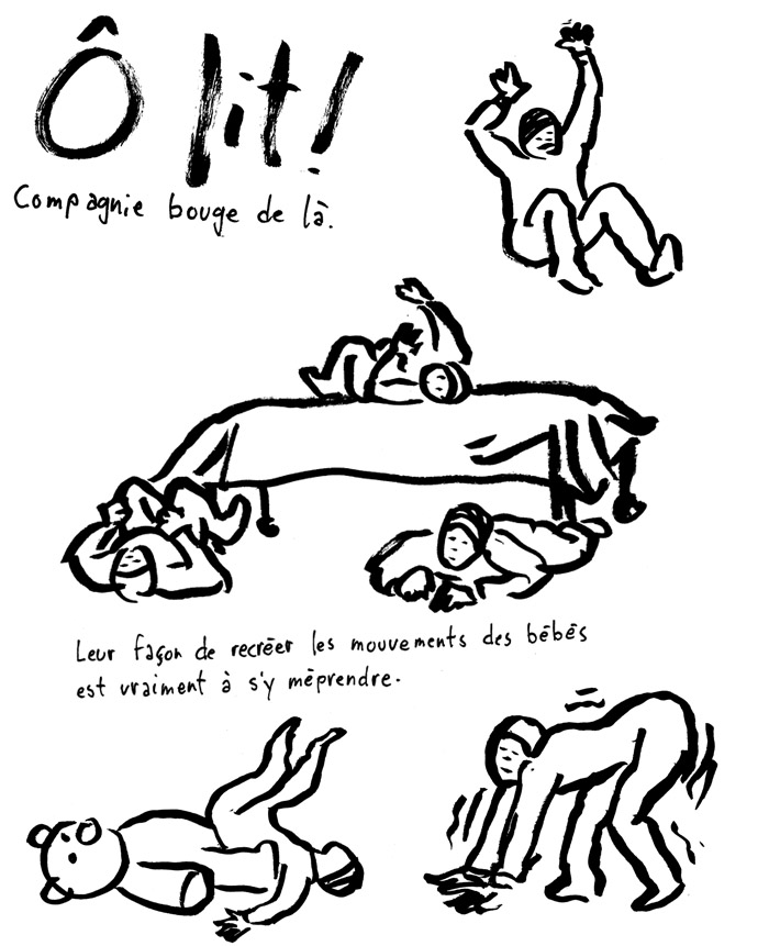 Francis Desharnais est talentueux, on le savait et on s’en réjouit à chaque nouvelle production de dessins. Mais saviez-vous qu’il est aussi un dessinateur tout-terrain? Oui, oui! Mettez-le dans une salle complètement obscure avec 250 jeunes enfants plein d’énergie, eh bien il affronte les éléments quoiqu’il arrive pour poursuivre l’oeuvre de ses croquis en direct. En voici l’incroyable résultat pour le spectacle Ô lit! de la chorégraphe Hélène Langevin!