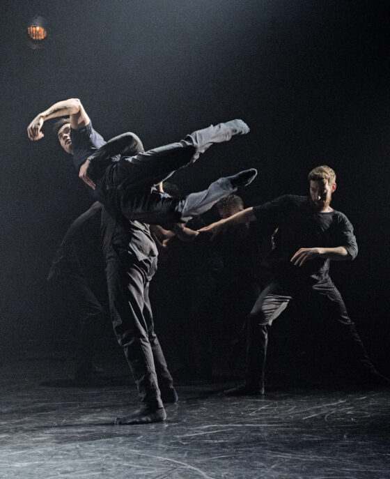 Tirant inspiration de sa propre expérience d’immigration au Canada, le chorégraphe chinois Wen Wei Wang se centre sur les nécessaires embûches que les individus migrants rencontrent à vouloir se fondre dans une autre culture et à vouloir adopter une nouvelle langue. Pièce pour cinq interprètes hommes, Dialogue traduit habilement en mouvement les collisions entre différentes visions du monde, ainsi que les sentiments de décalage, parfois d’exclusion et de frustration résultant des barrières linguistiques, entraves à la communication et à se sentir pleinement soi.