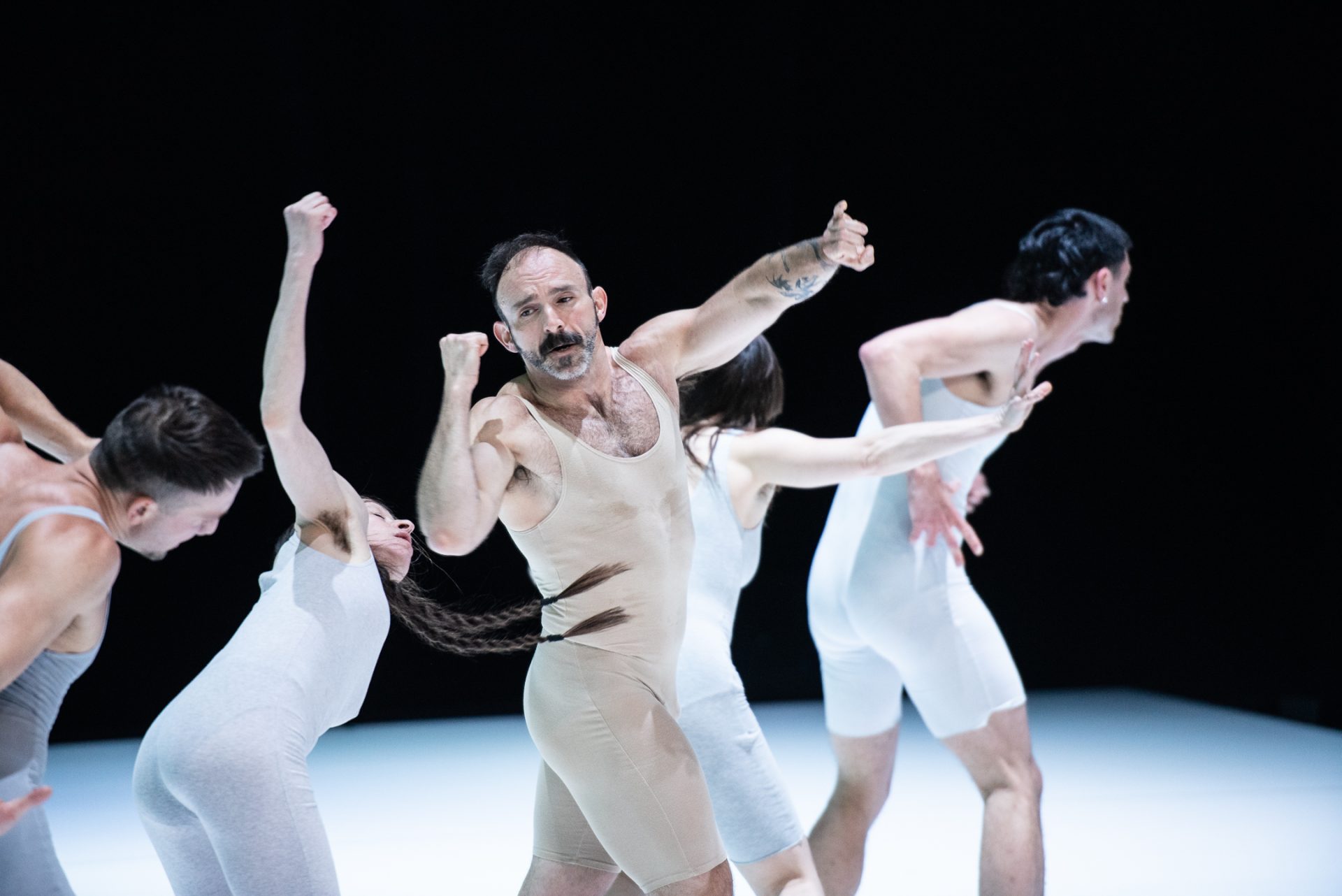 Au départ, on souhaitait aller au cœur du mouvement, que sa simplicité évoque l’essentiel dans quelque chose de très minimaliste, et finalement, ç’a changé un peu à notre insu. On construit encore à partir de ces mouvements-là, mais tout s’est finalement développé pour devenir une immense machine où les corps sont presque mécanisés. Les danseurs sont aspirés à l’intérieur de cette énorme machine qui les fait bouger à un rythme synchronisé constant, très exigeant à la fois pour le mental, le psychique et le physique.» – Catherine Gaudet