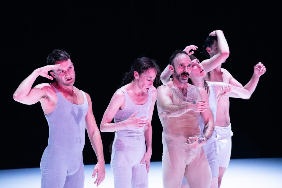 Cinq corps s’activent au rythme du métronome. Leurs mouvements mécaniques reprennent, la machine s’échauffe et exige d’eux une rigueur irréprochable. Arrivée à maturation de son langage artistique, la chorégraphe Catherine Gaudet part en quête d’un espace sous les corps où les désirs peuvent renaître malgré le poids de la contrainte.