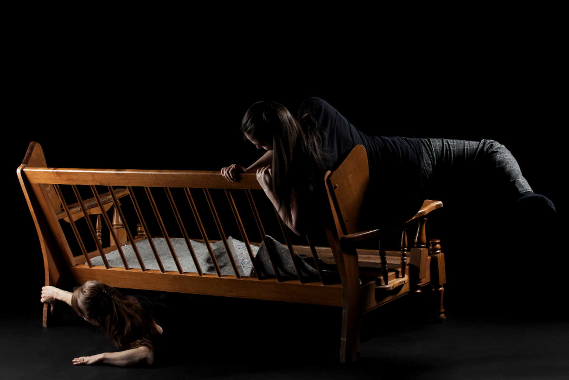 En création en 2013 et 2014, Noire s’annonce grave, mais enveloppée de lumière. Métaphore du temps qui passe, la pièce est née des ruines de vies à l’envers, là où l’espoir tranquille jaillit de sous les décombres. Misant sur un travail corporel exigeant, Annie Gagnon crée une gestuelle organique et précise, qui s’imbrique au milieu d’objets du quotidien. Sur fond de clairs-obscurs, la jeune chorégraphe aborde la souffrance et la perte de repères avec poésie et humanité.
