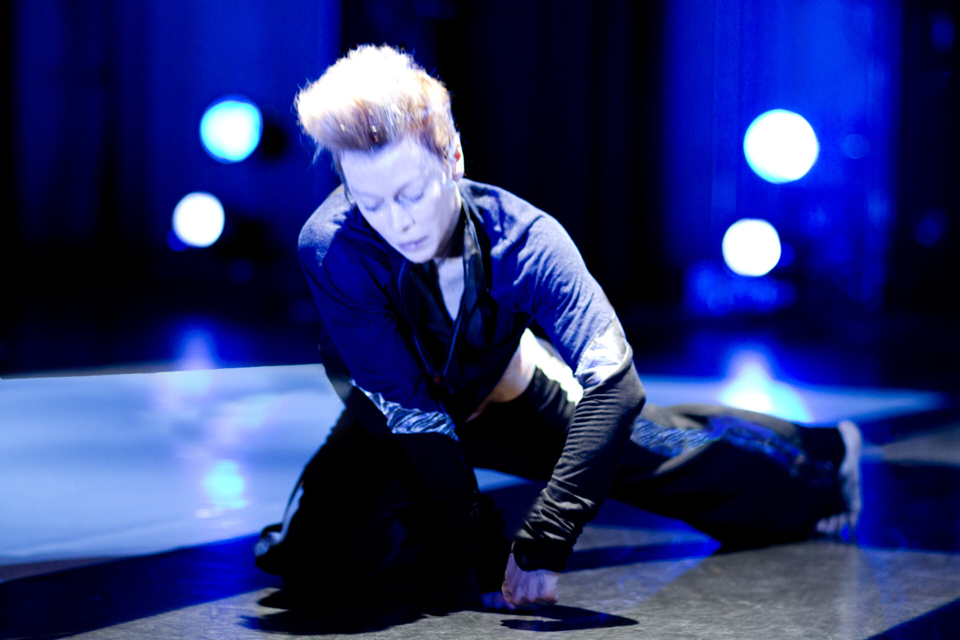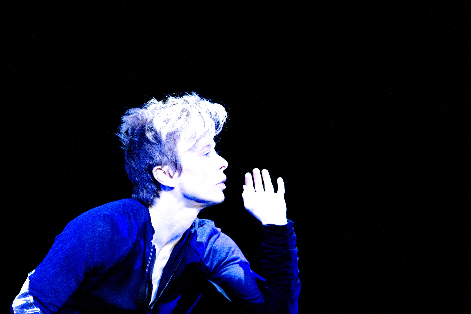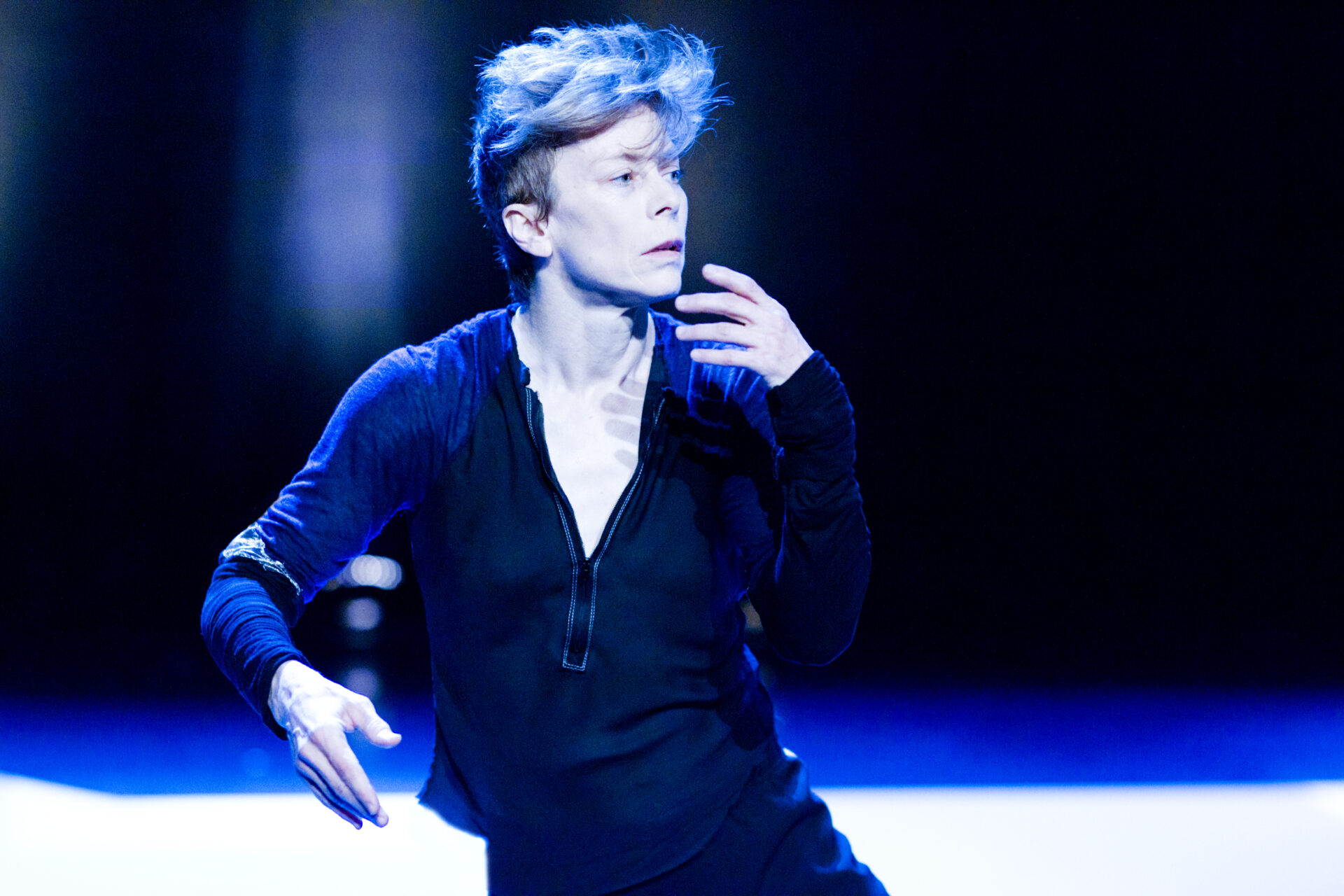 Finalement, et après avoir passé d’innombrables heures en studio à expérimenter sur du Daft Punk, la tornade blonde s’est assagie – bien que le mot soit trop fort – au contact du compositeur turc Mercan Dede, qui mélange musique soufie et électro actuel. «Plus je l’ai écoutée, plus j’ai été happée par cette sonorité sensuelle. Je me suis mise à travailler la danse un peu autrement, tranquillement. Y a quelque chose de plus fluide dans le mouvement. Cette idée de bleu est arrivée, je pense, avec cette musique moyenne orientale qui apporte des nuances à tout.»