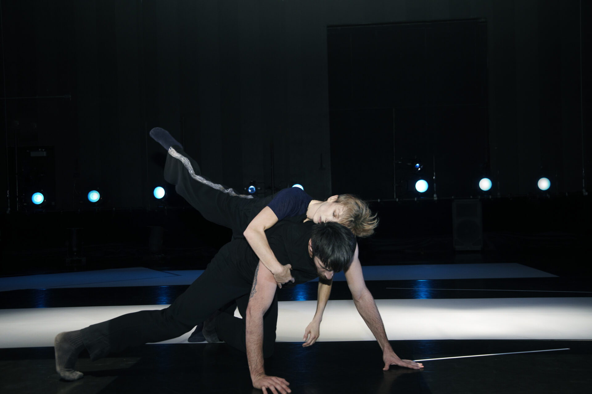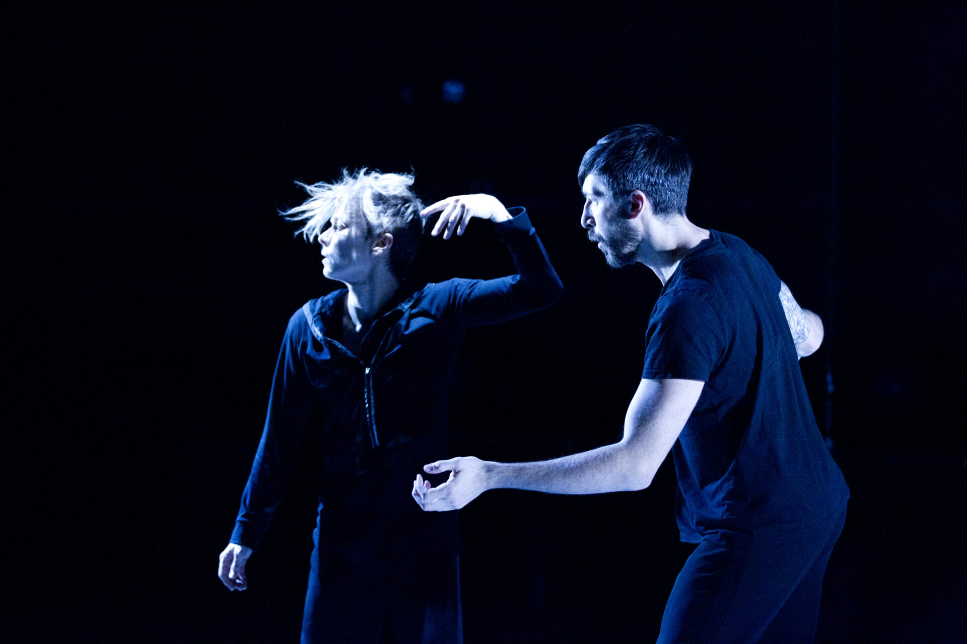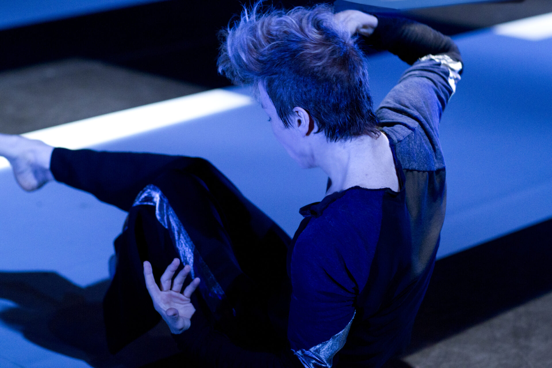 Finalement, et après avoir passé d’innombrables heures en studio à expérimenter sur du Daft Punk, la tornade blonde s’est assagie – bien que le mot soit trop fort – au contact du compositeur turc Mercan Dede, qui mélange musique soufie et électro actuel. «Plus je l’ai écoutée, plus j’ai été happée par cette sonorité sensuelle. Je me suis mise à travailler la danse un peu autrement, tranquillement. Y a quelque chose de plus fluide dans le mouvement. Cette idée de bleu est arrivée, je pense, avec cette musique moyenne orientale qui apporte des nuances à tout.»