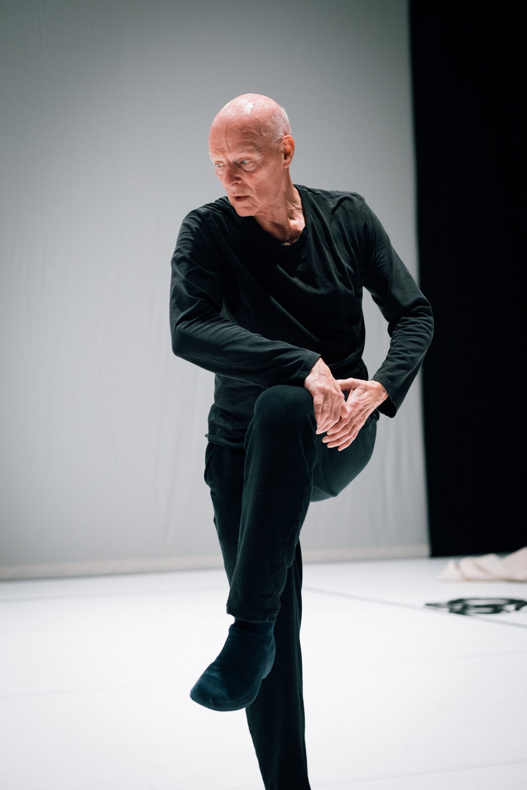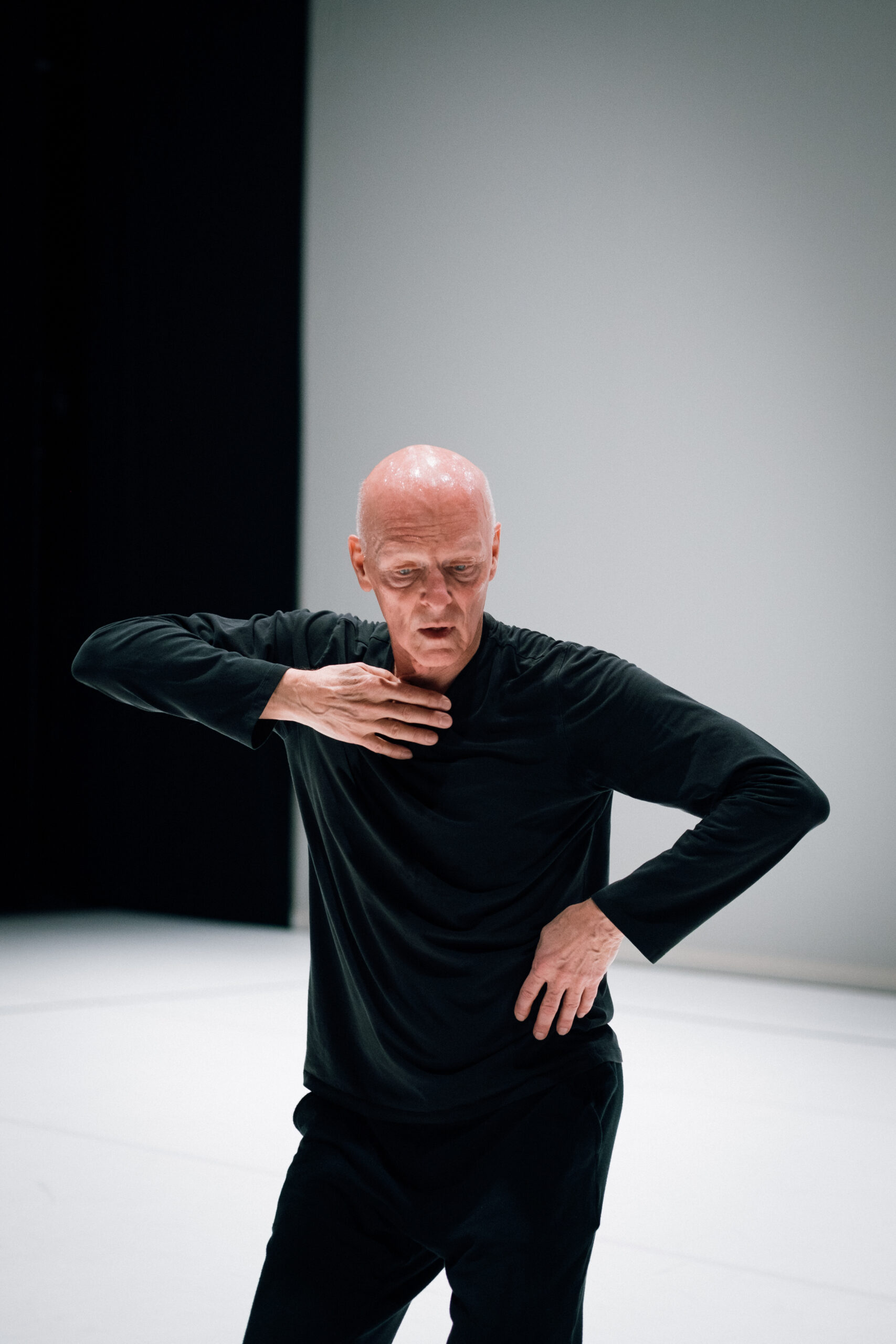 40 ans de carrière plus tard, Paul-André Fortier s’offre, pour ses 70 ans, un faux solo. Entouré de talentueux collaborateurs (Étienne Lepage, Étienne Pilon, Jackie Gallant, Marc Séguin), Fortier propose une sérieuse leçon d’audace. Dans un carré délimité, l’interprète parcourt — presque en glissant — la surface blanche contrastée de son corps vêtu de noir, traçant des lignes de force. Dans une esthétique formelle où la sobriété règne, comédien et musicienne se livrent à une mise en danger ludique. Le septuagénaire accepte volontiers l’inconfortable posture. Danse. Persiste. Ni adieu ni rétrospective, Solo 70 s’impose comme une synthèse de son travail par autant de révolutions que de minutie. C’est un corps souverain, élevé, que Fortier donne à voir.
