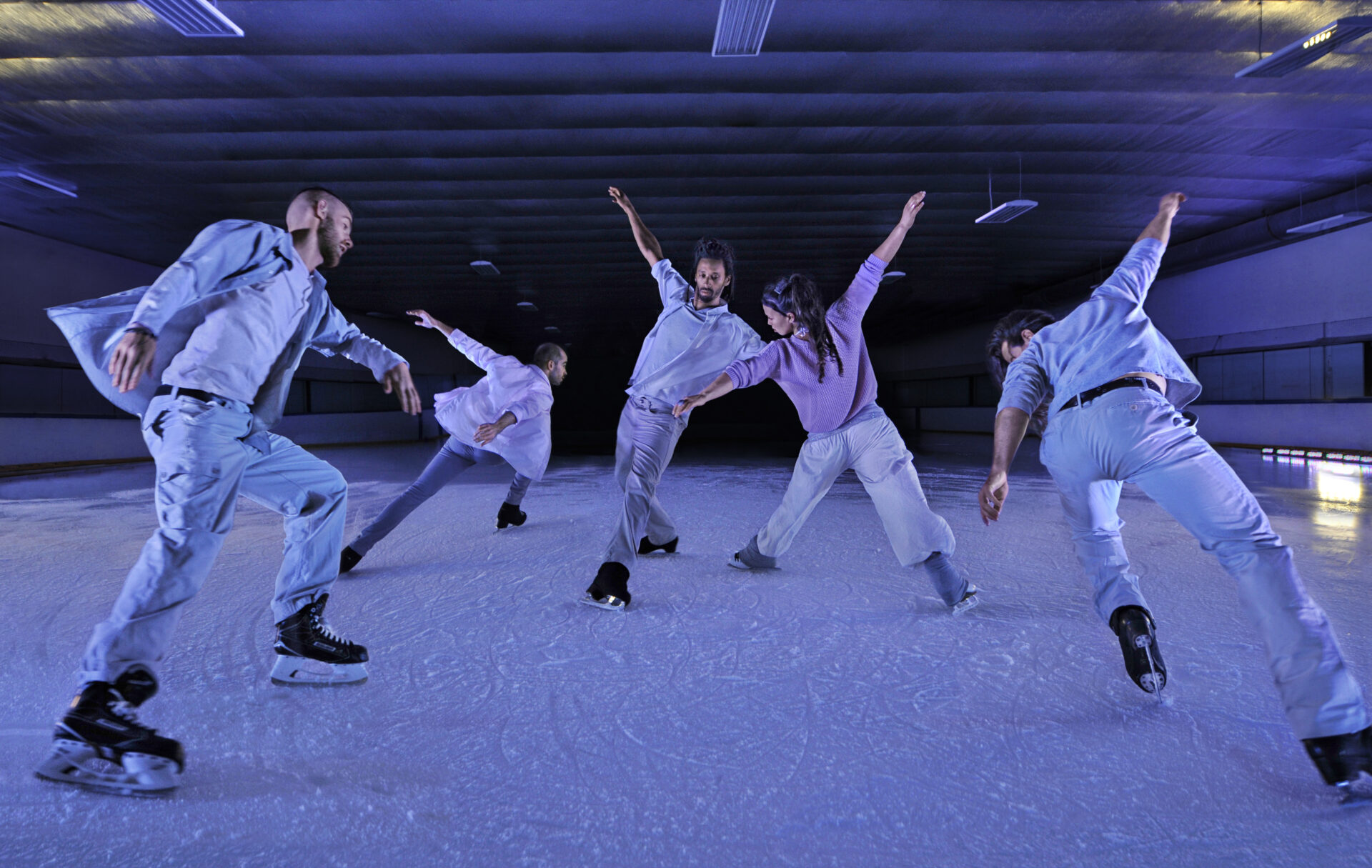Dans Threshold, coprésenté par La Rotonde et le Grand Théâtre de Québec, les cinq interprètes jouent avec le vertige et la pesanteur, avec une démarche ancrée dans la danse contemporaine et où se mêlent poésie et vitesse. Les artistes restent maîtres de leur agilité, avec des déplacements pouvant atteindre les 40km/h. «C’est sûr qu’il existe un risque, mais la glace c’est notre deuxième nature, c’est notre liberté et notre univers. Par contre, pour le spectateur, la proximité accentue cette impression de danger et on joue avec ça», explique Alexandre Hamel, fondateur et chorégraphe de la compagnie.
