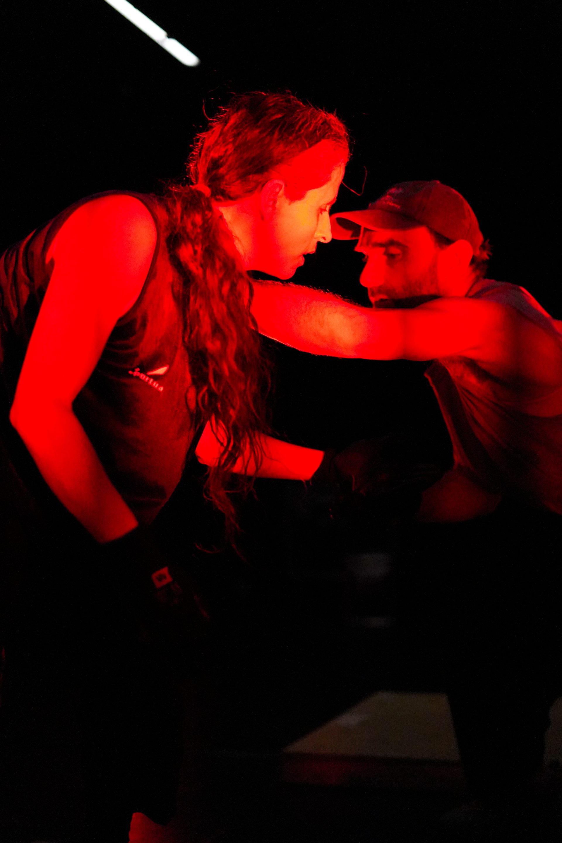 Force [titre provisoire] est un processus de recherche métaphorique dans lequel Eve et moi sommes nos propres cobayes afin d’explorer l’impact de la convergence des idées et des actes autour de la question de la force. Nous discutons de ce projet depuis plusieurs années déjà, et cette résidence technique offerte par La Rotonde est tombée à point nommé afin de valider et tester quelques axes fondamentaux liés aux langages scéniques.