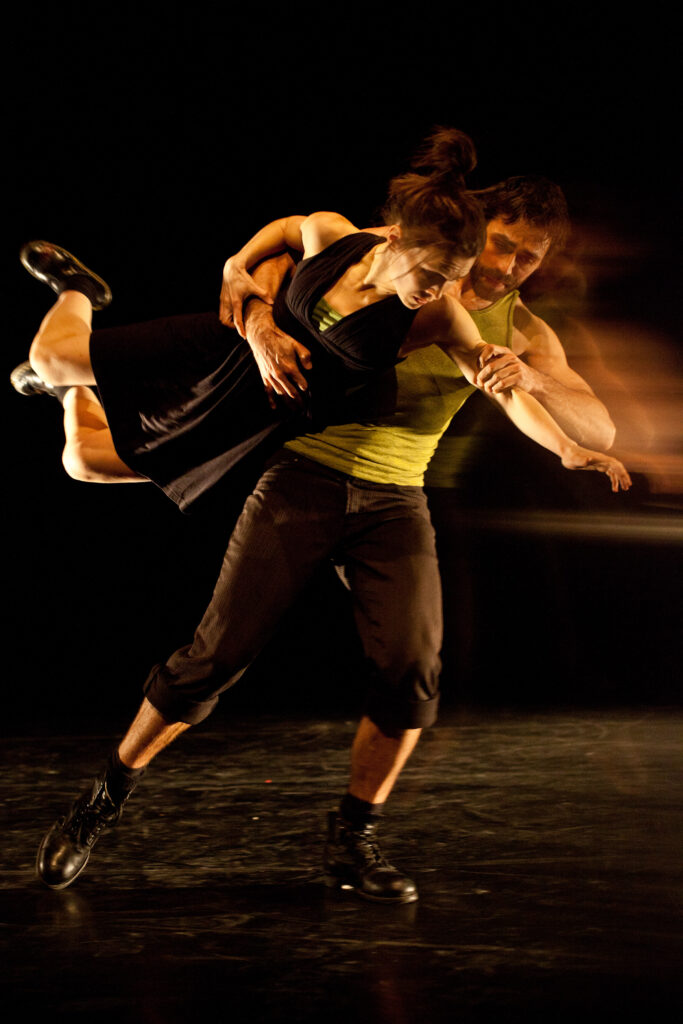 Un couple qui se cherche et se retrouve, s’attrape et se rattrape, se questionne et se relance, même si le terrain est vaporeux, incertain. Expressions personnelles mises à l’épreuve par l’autre, où le contact physique intime nécessite la réécriture sonore. Tu es aveugle. Je suis sourd-muet. Que ta main touche la mienne et que la communication soit. – Khalil Gibran