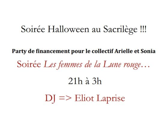 Soirée Halloween au Sacrilège !!! Party de financement pour le collectif Arielle et Sonia